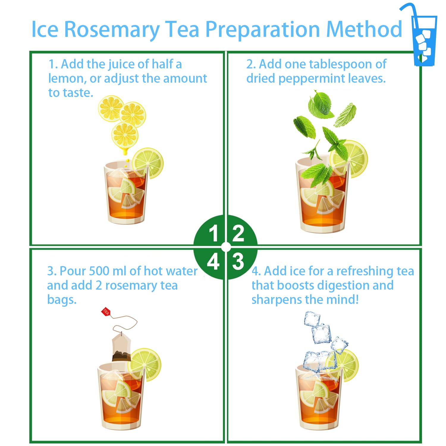 - 【Versatile Blend】: Soak the tea bags in hot water for about 10-12 minutes. Enjoy rosemary tea on its own, or mix it with lemon, lavender, mint, or other herbs for delightful blends. You can also add it to cocktails or use it as a base for iced tea creations