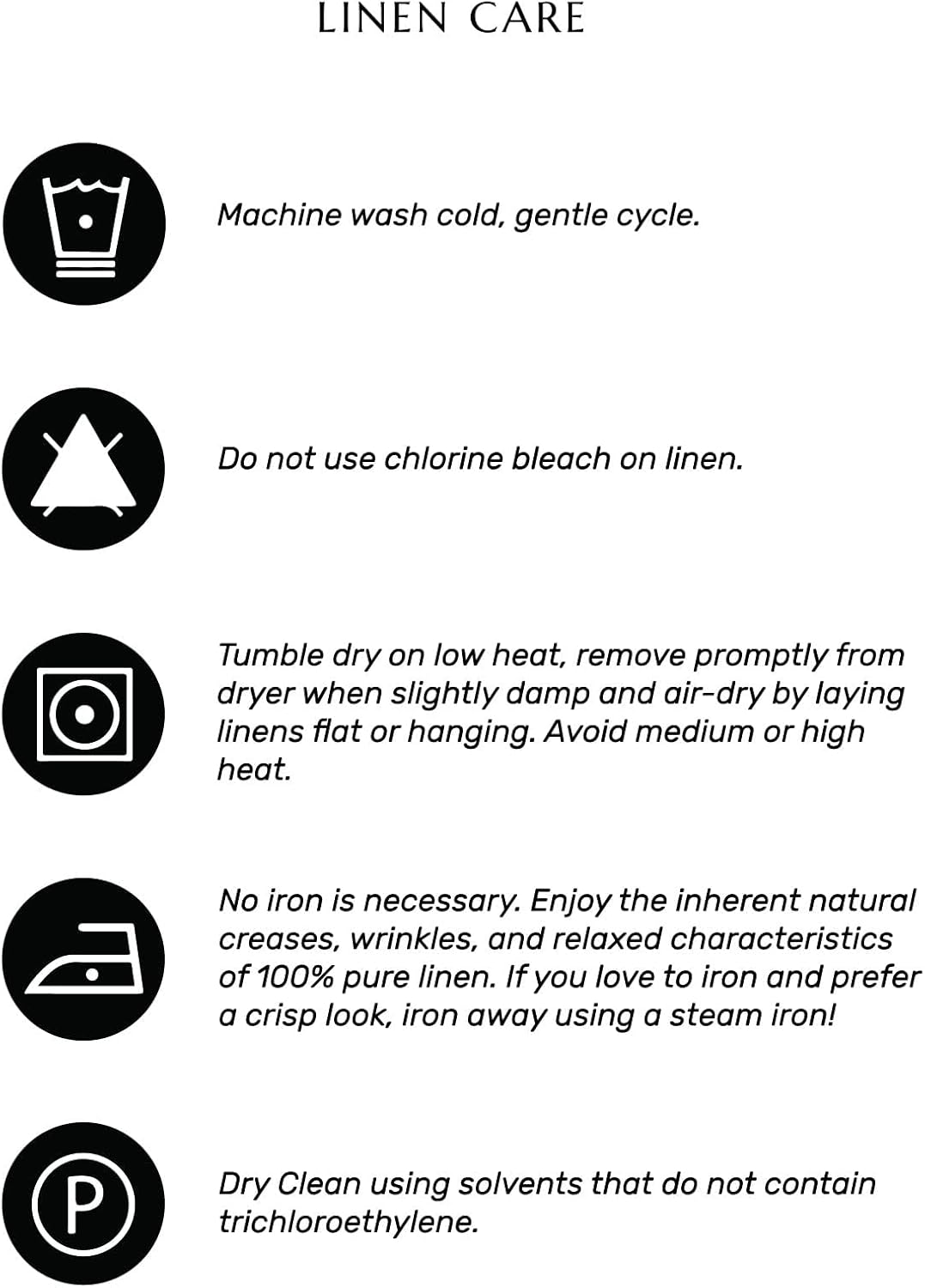 - ๐๐ฎ๐๐ ๐๐ฎ๐ฟ๐ฒ : ๐ ๐ฎ๐ฐ๐ต๐ถ๐ป๐ฒ ๐ช๐ฎ๐๐ต๐ฎ๐ฏ๐น๐ฒ, Low Iron as Needed, Steam Iron for a crisp look. The beauty of each pure linen piece is the natural fibers and classic aesthetic that mellows with each washing, betters with age and requires minimal care.