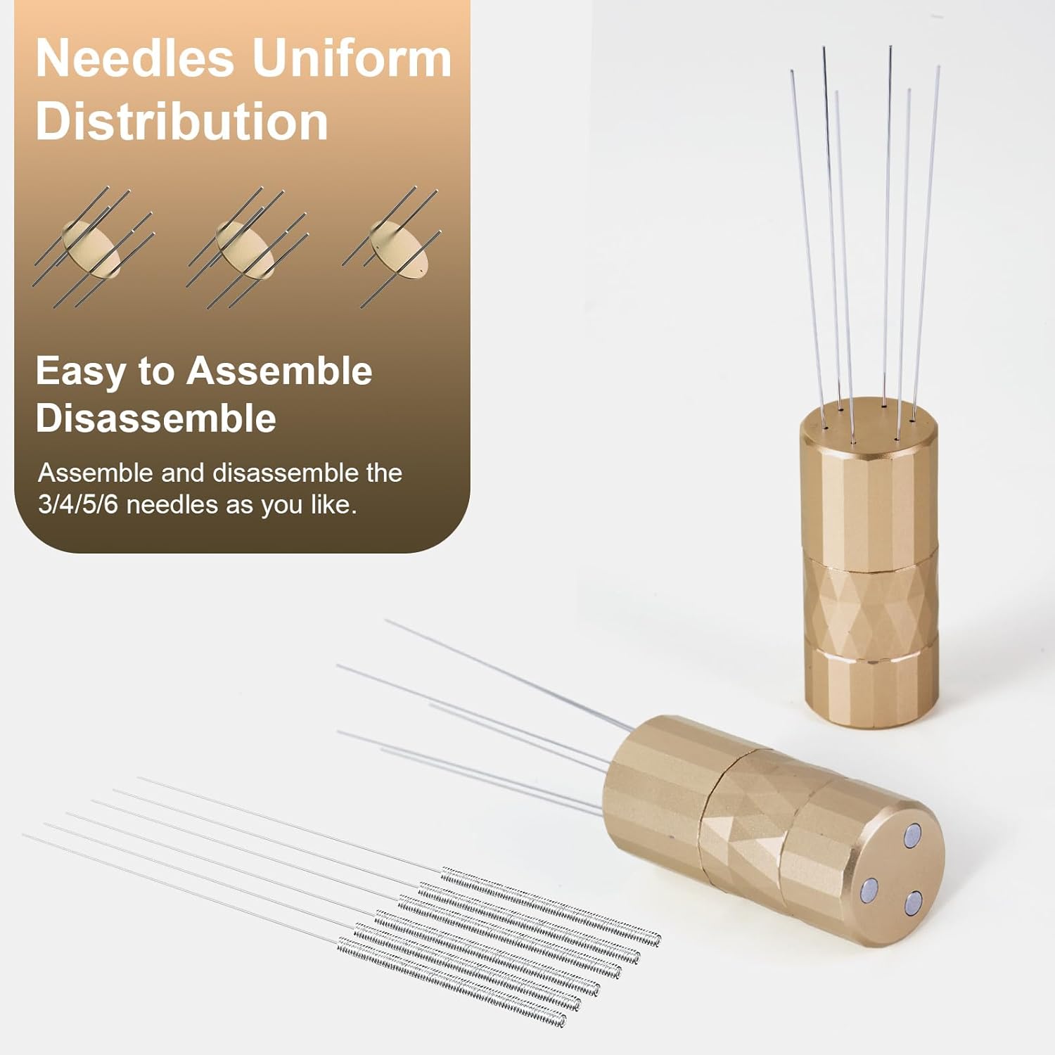 - 【Magnetic Stand】45 # steel stand,with 3 strong magnets on the top, the needle distributor can be easily placed, convenient and simple. Simple and chic design style, this coffee needle distributor shows the unique personality of fashionable in an implicit way.