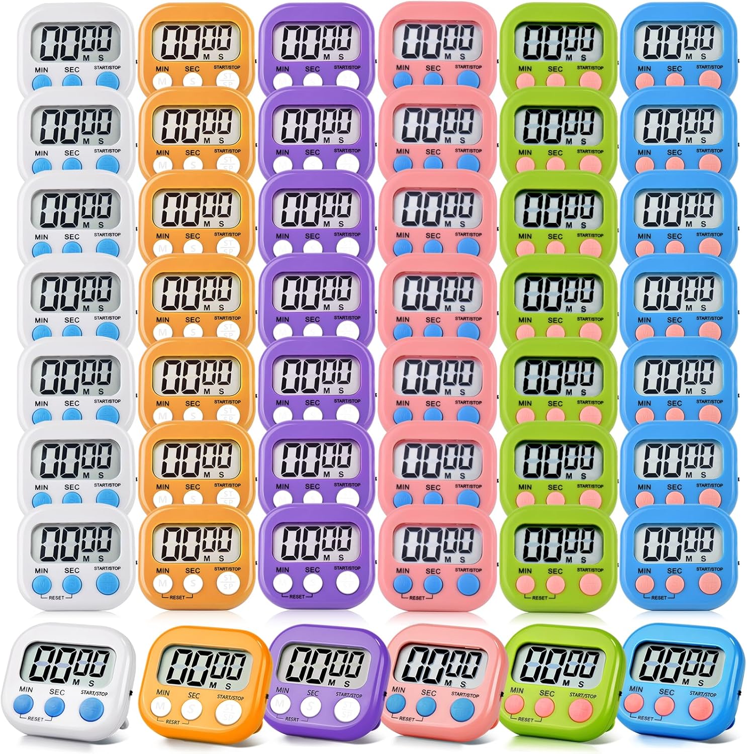 48 Pack Digital Kitchen Timer Magnetic Digital Timer with Big Display Loud Ring Cooking Timers for Kitchen Electronic Timer for Cooking, Bathing, Gym, Break Time, Classroom(6 Color)