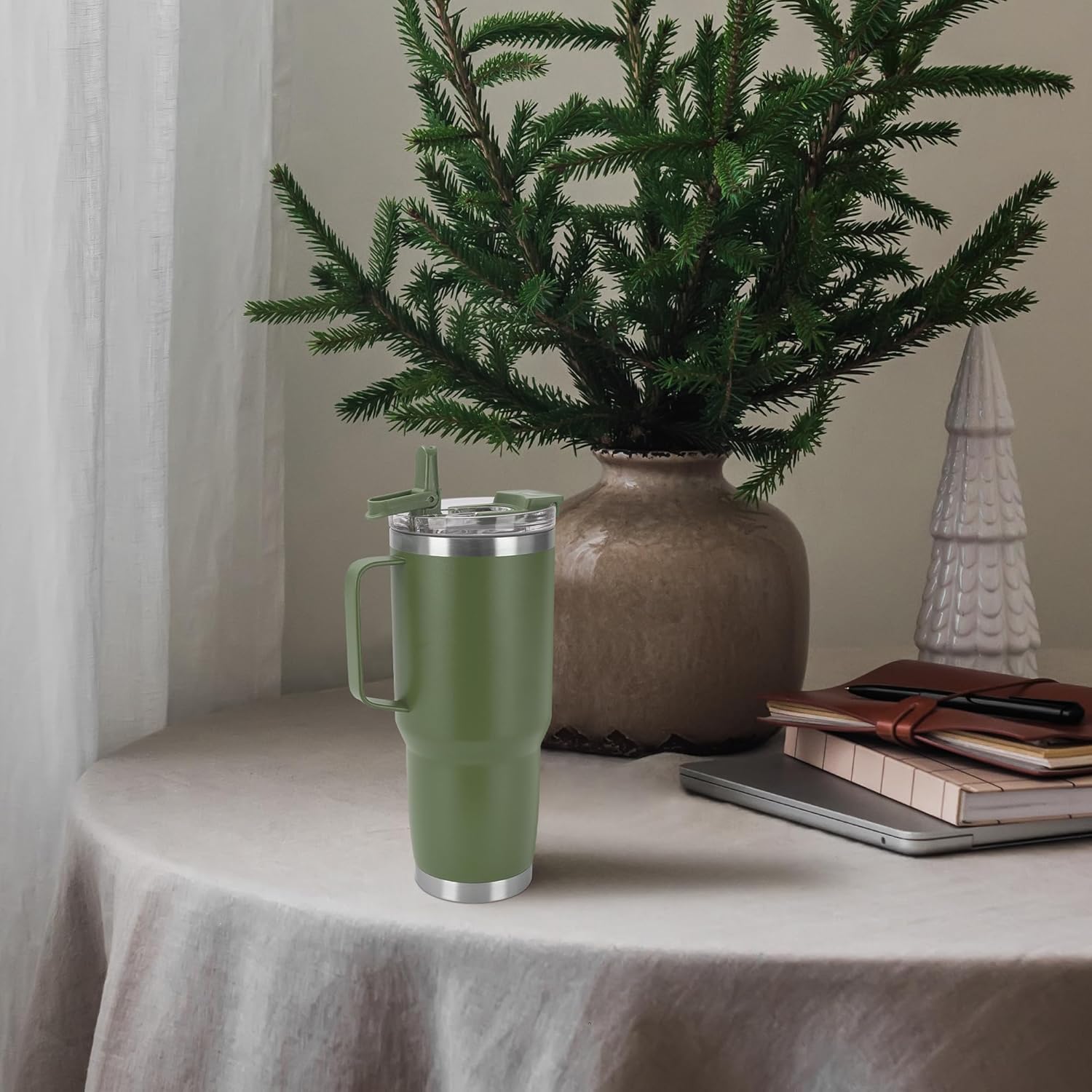 - Tumbler with handle:The welded handle provides a firm grip on your drink. It's large enough for anyone to hold easily, allowing you to carry the tumbler around and take a sip with one hand.