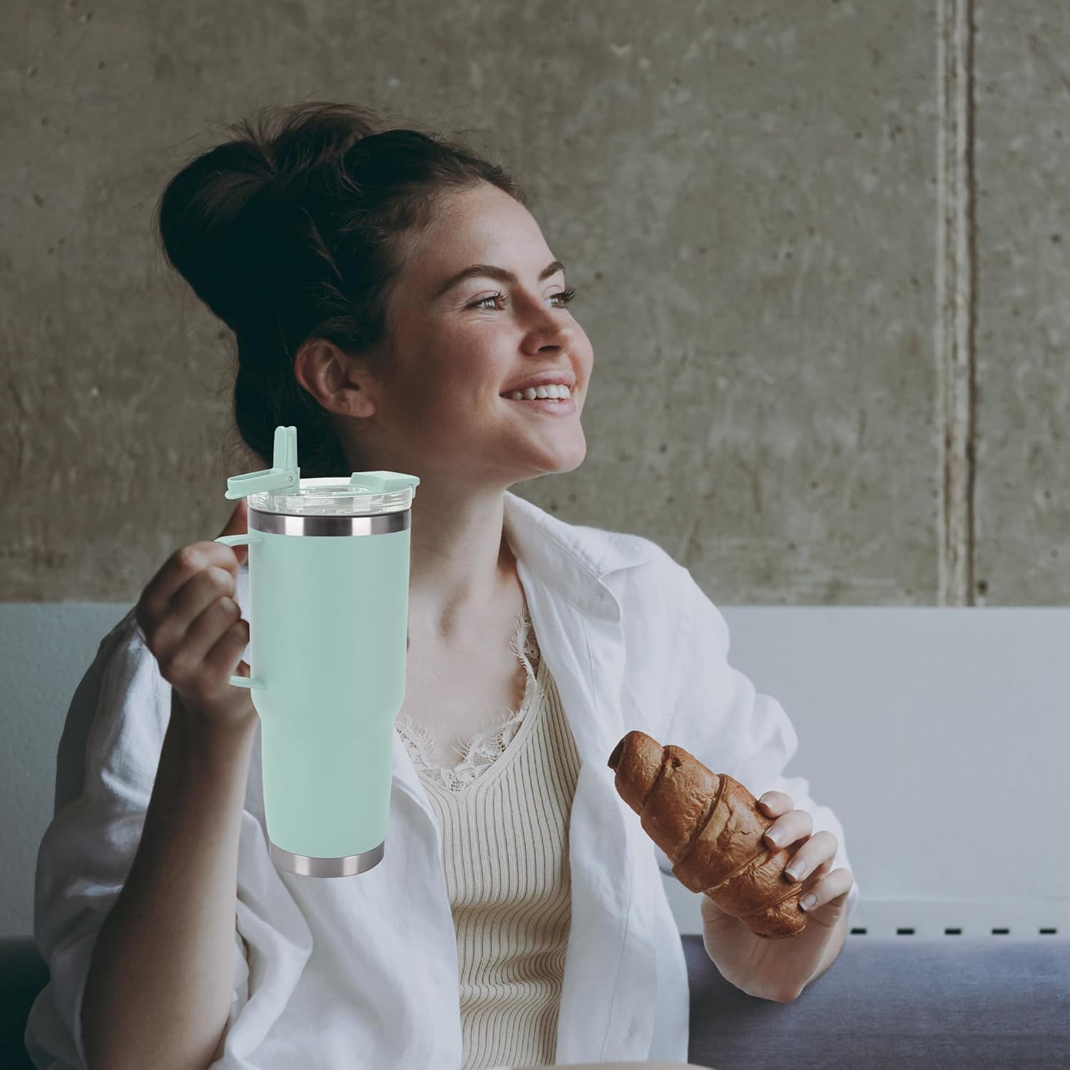 - Tumbler with handle:The welded handle provides a firm grip on your drink. It's large enough for anyone to hold easily, allowing you to carry the tumbler around and take a sip with one hand.