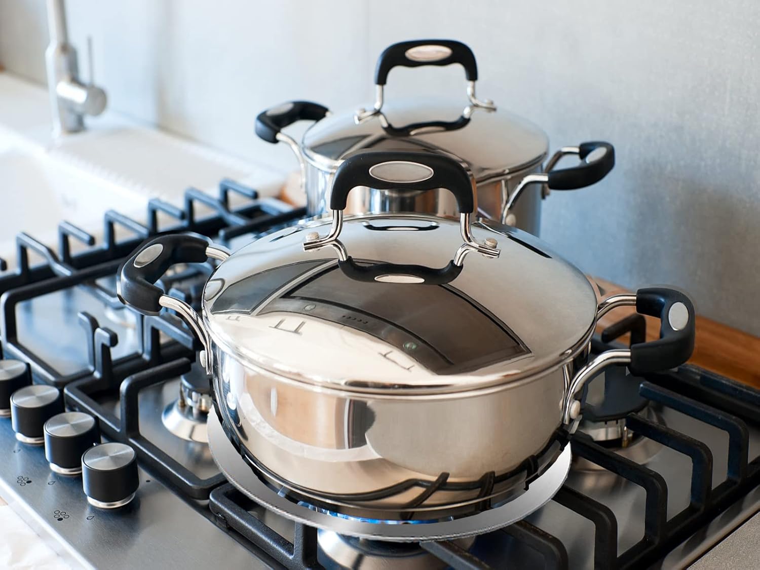 - Good Material: The inner of heat diffuser consists of three layers. The upper and the bottom layers are stainless steel, bonus the middle is made of premium aluminum materials for excellent heat distribution. Keep the natural taste for food.