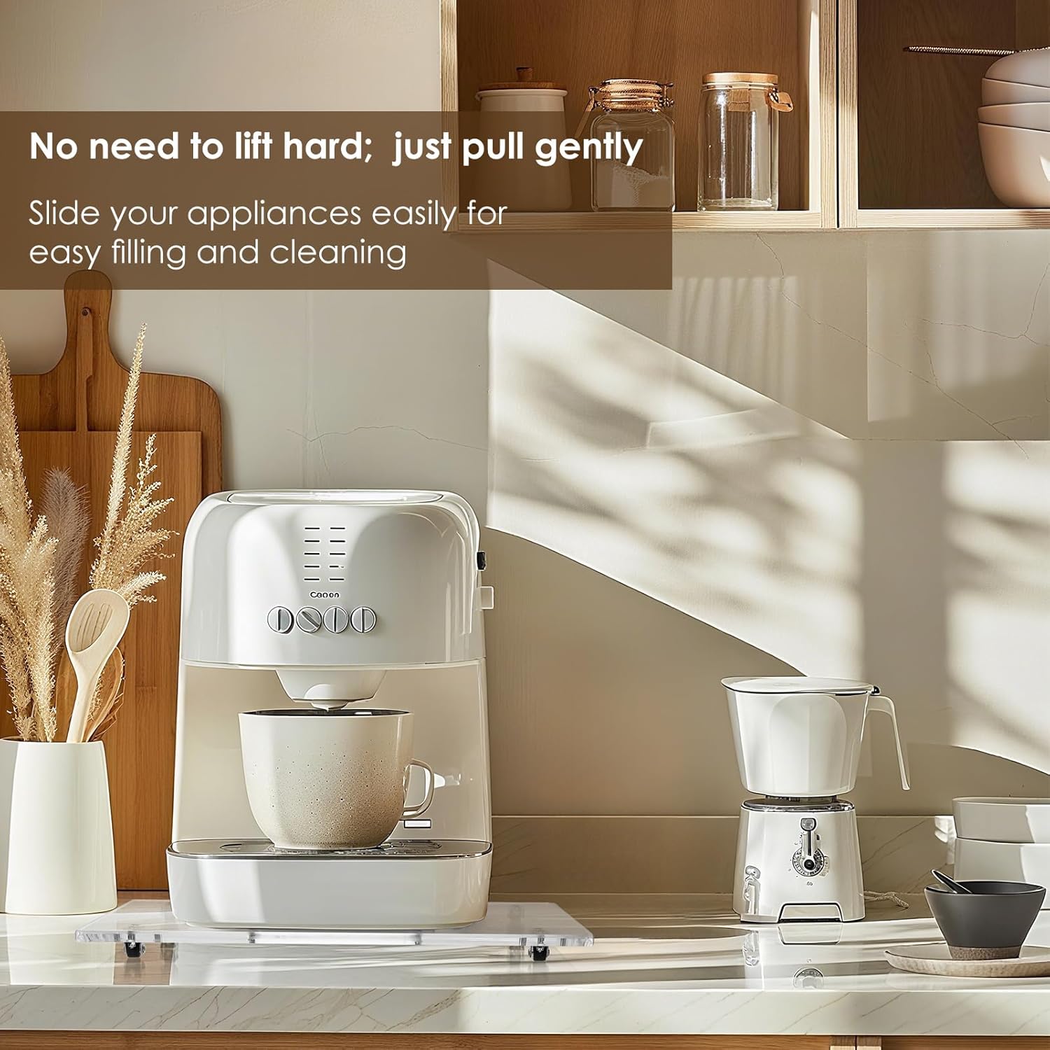 Appliance Sliders for Kitchen appliances Sliding Tray for Coffee Maker, Espresso Machines, Mixers Sturdy Kitchen Aid Sliders for Mixer - Duty Equipment with Rubber Wheels - 13" x 14" (Clear)