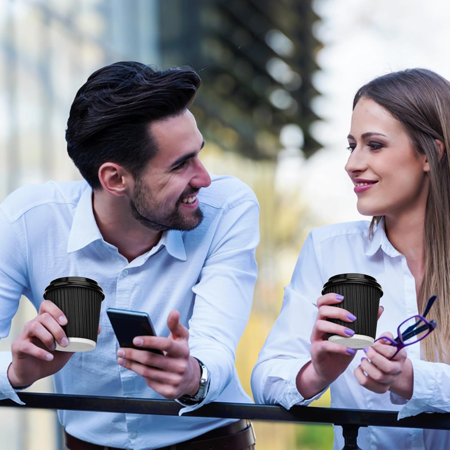 100 4oz Disposable Espresso Cups with Lids Ripple Corrugated Paper Disposable Coffee Cups Cups for Hot Chocolate, Tea, and Cocoa Drinks (Black)