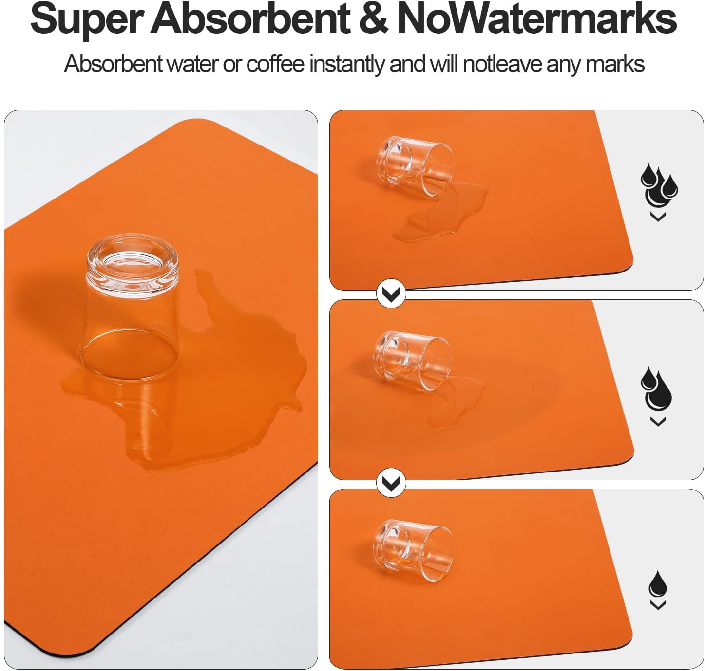 Dish Drying Mat for Kitchen Counter | Coffee Bar Mat for Countertops | Heat Resistant Drainer Mat with Non-slip Rubber Backed | Hide Stain Kitchen Absorbent Draining Mat | Orange 18"x24"