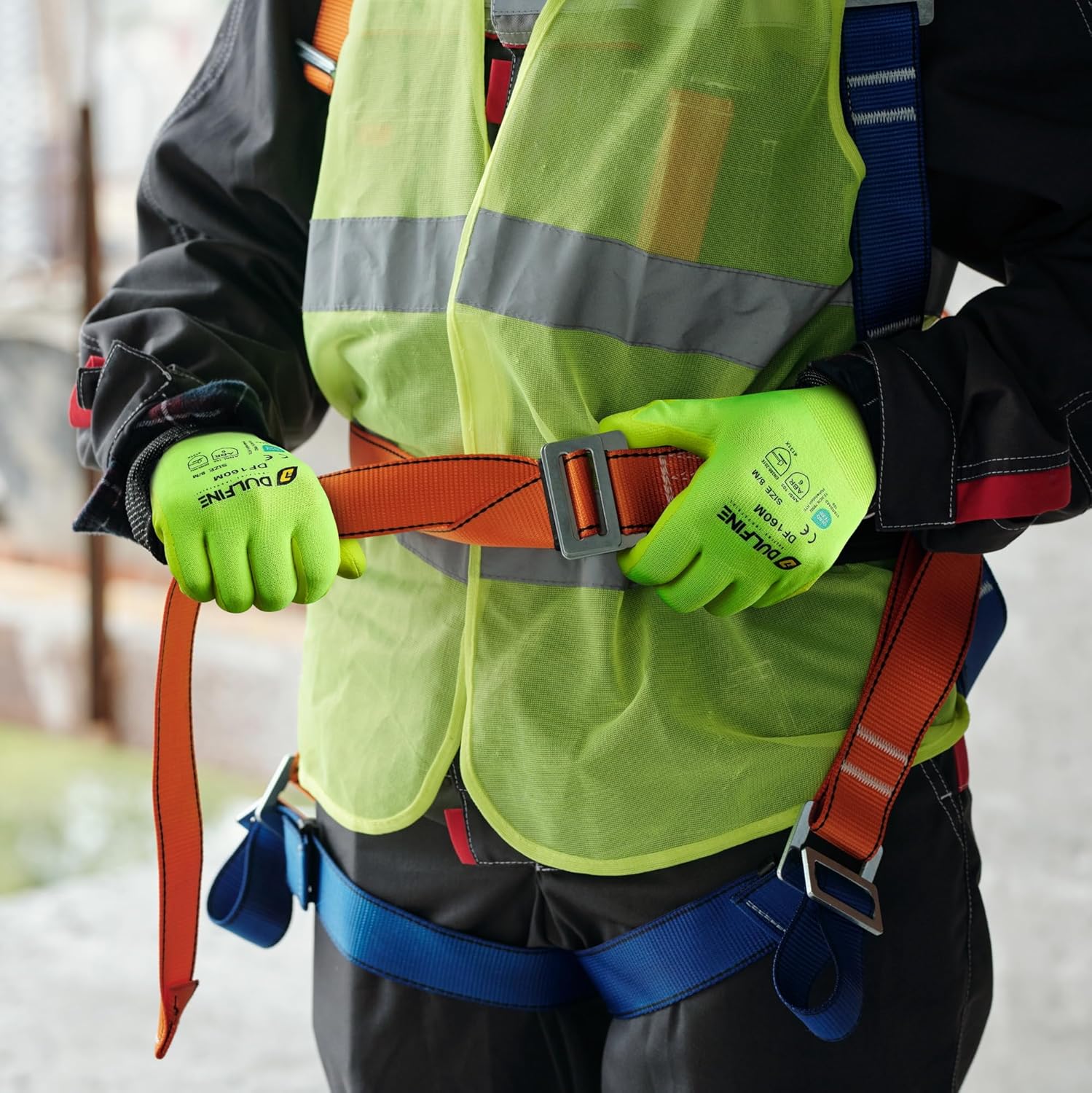 DULFINE Work Gloves for Men and Women,Hi-Vis Yellow Knit Nylon Glove with MicroFoam Nitrile Coated-12 Pairs Pack,Ideal for General Purpose,Automotive,Home Improvement,Painting(Small)