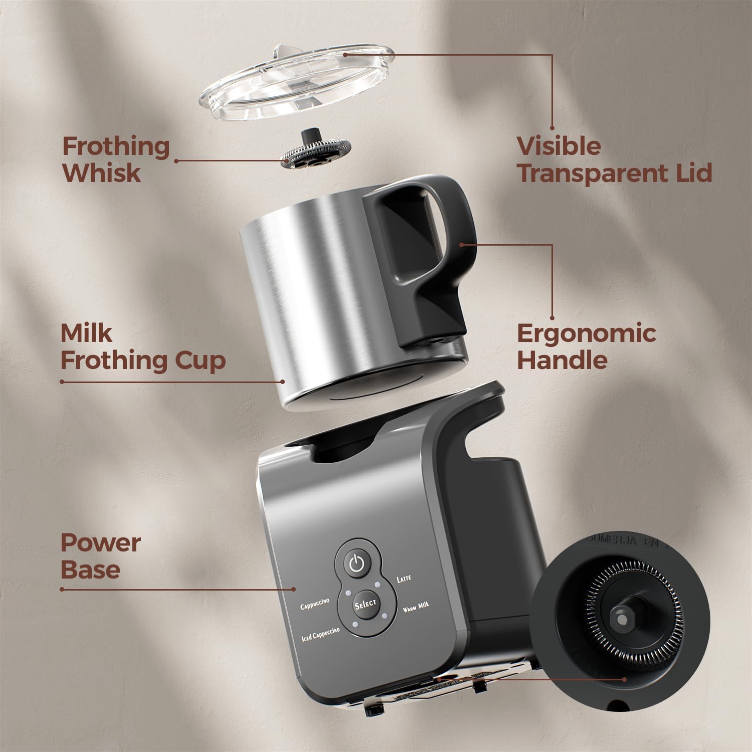 - Safe Milk Frother And Steamer: Our detachable milk frother is designed with advanced technology that heats up milk quickly and create fine, rich milk froth quietly in a short time. Additionally, it has the capability to heat up to 12.5oz/450ml of milk or hot chocolate milk.