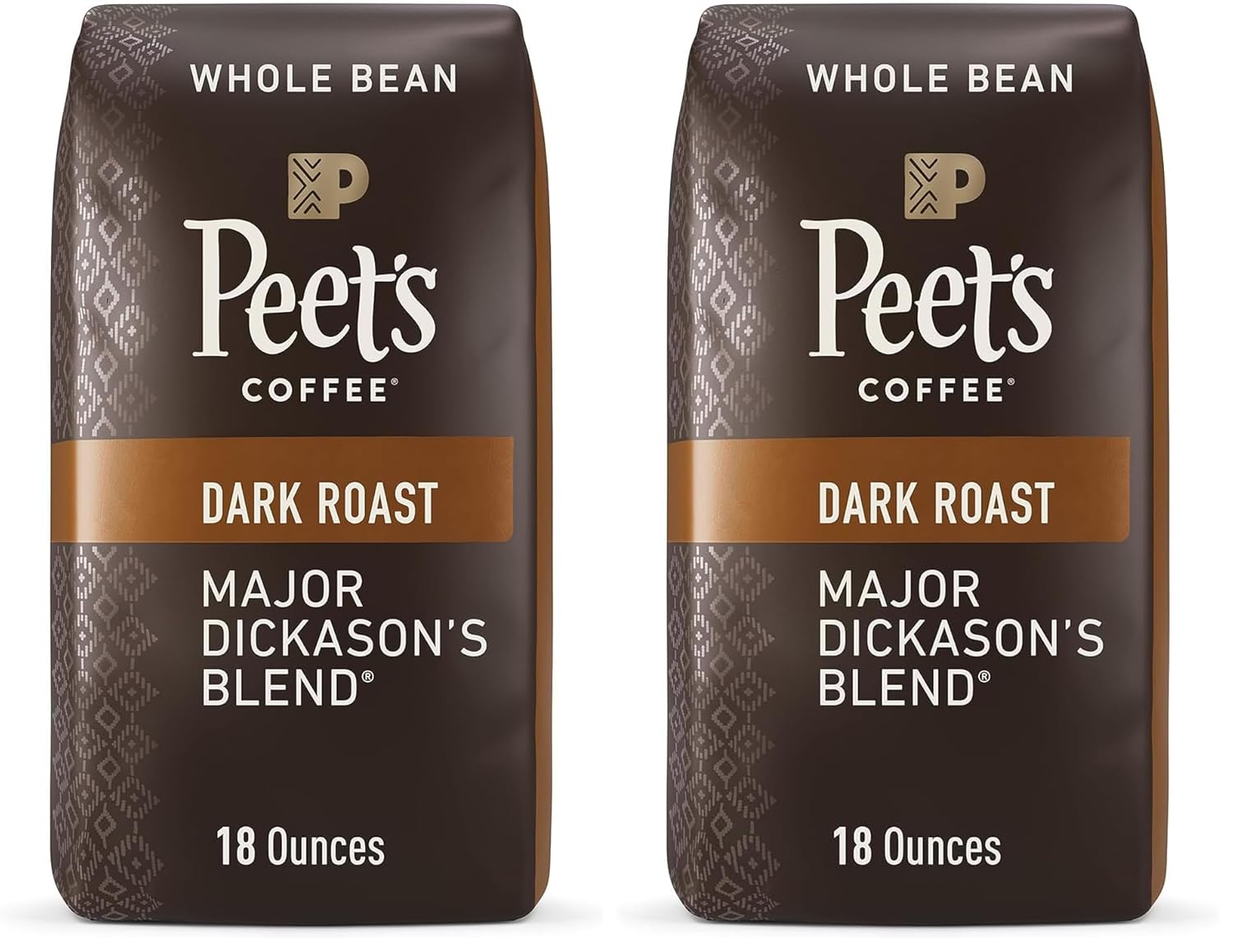 - Contains two (2) 18 Ounce Bags of Peet's Major Dickason's Blend Whole Bean 100% Arabica Coffee