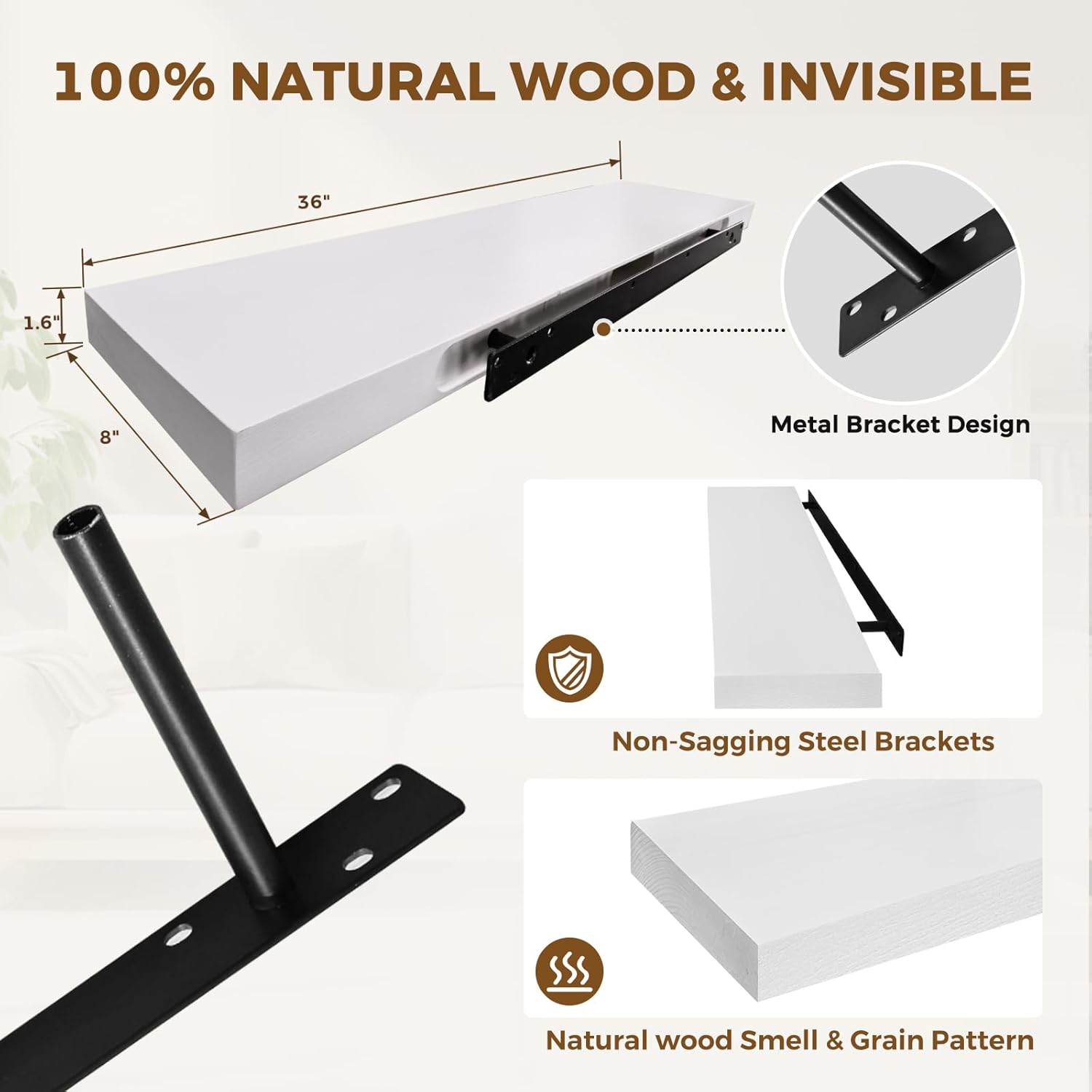 - Premium Solid Wood:Crafted from solid wood, this floating wall shelf features a visible natural grain, offering charm, durability, and a rustic-modern aesthetic