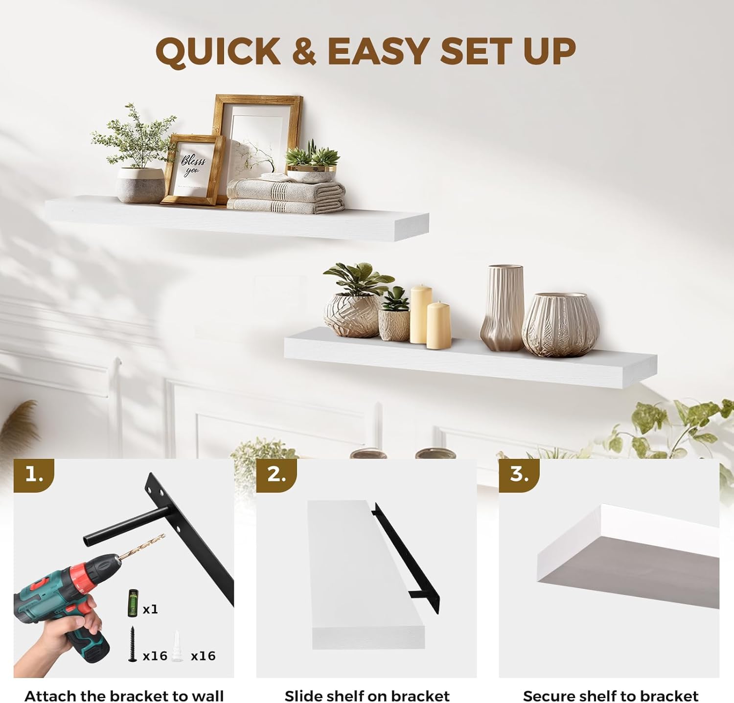 - Stylish & Functional Decor: Crisp white finish brightens up your space and complements coastal, modern, or minimalist interiors. Perfect for displaying books, plants, or candles without clutter