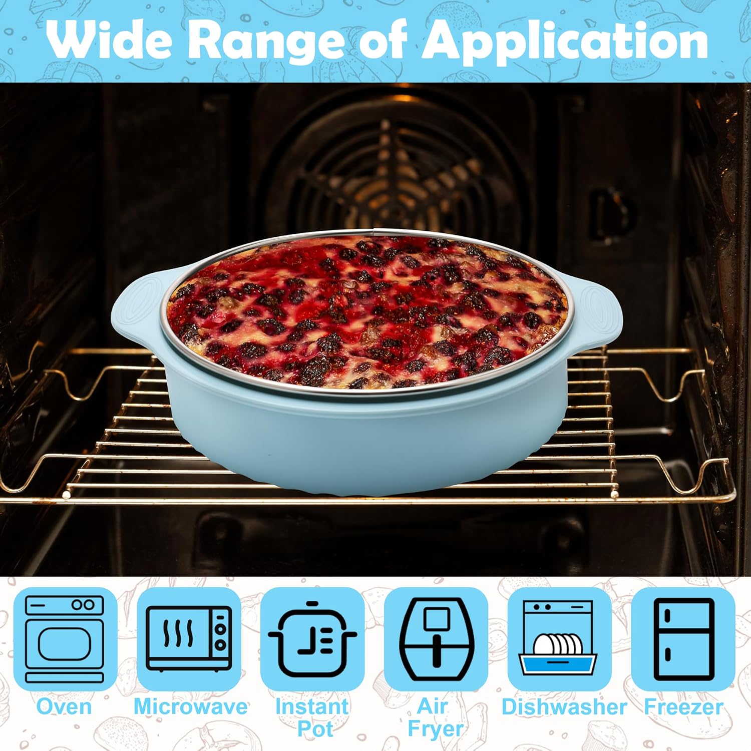 - Unlimited Baking Possibilities - Our cake snap mold can make cheesecake, mousse, lasagna, deep dish pizza, fruit pies, and a variety of other similar recipes. It is not only suitable for oven, but also for Instant Pot, air fryer, microwave, etc. and dishwasher safe. It will be perfect for your baking life.