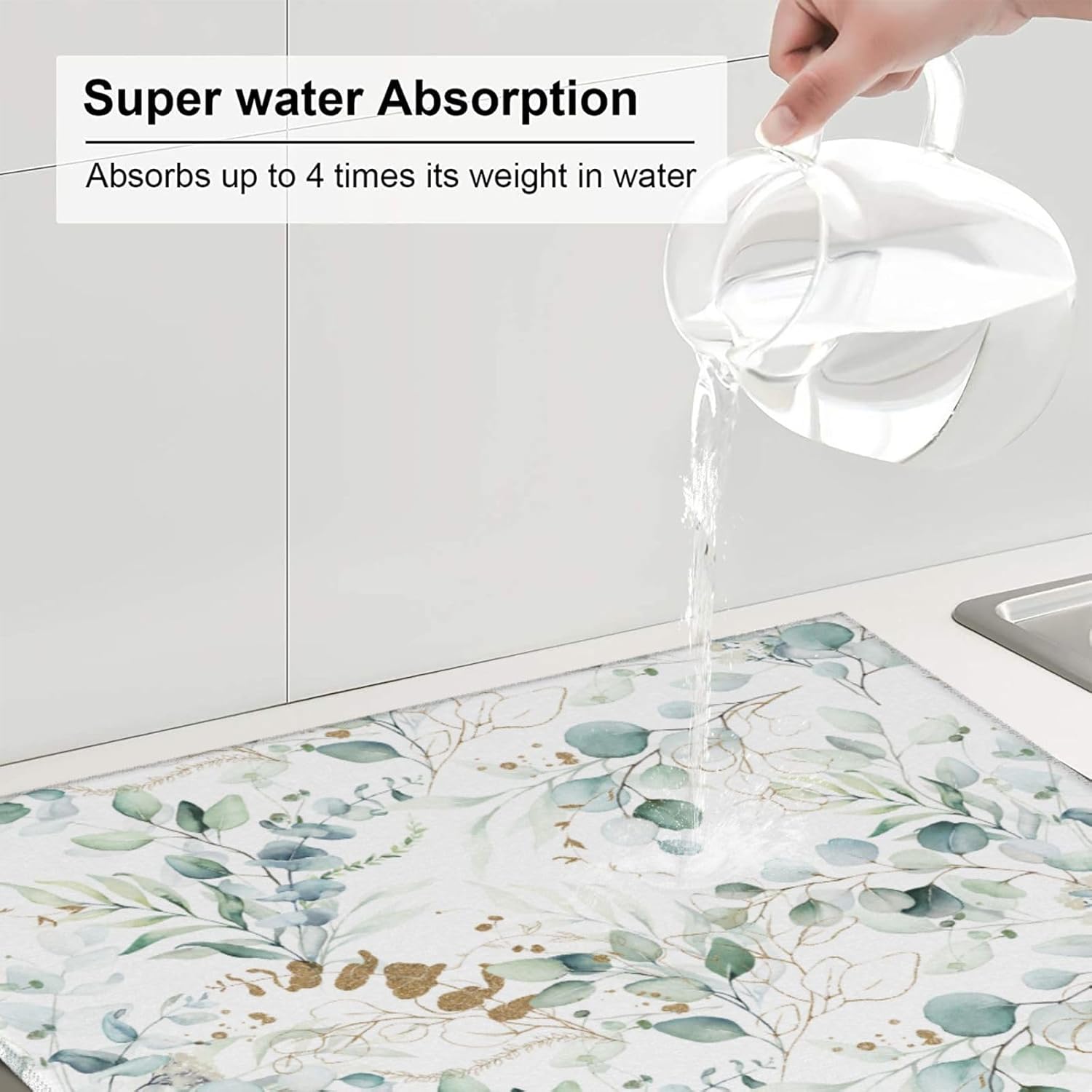 - Strongly Absorbent -- The Both Sides Of The Drying Mat Is Made Of Absorbent Ultra-Fine Fiber And The Middle Is Made Of Composite Sponge., Absorbs Four Times Its Weight In Water. Place Pots, Pans, Dishes And Glassware Directly On The Mat, It Can Also Dry Fruit After Cleaning. Our Drying Mat For Kitchen Counter Is Tear-Resistant And Long-Lasting, Offering Enduring Safeguarding For Your Tabletop