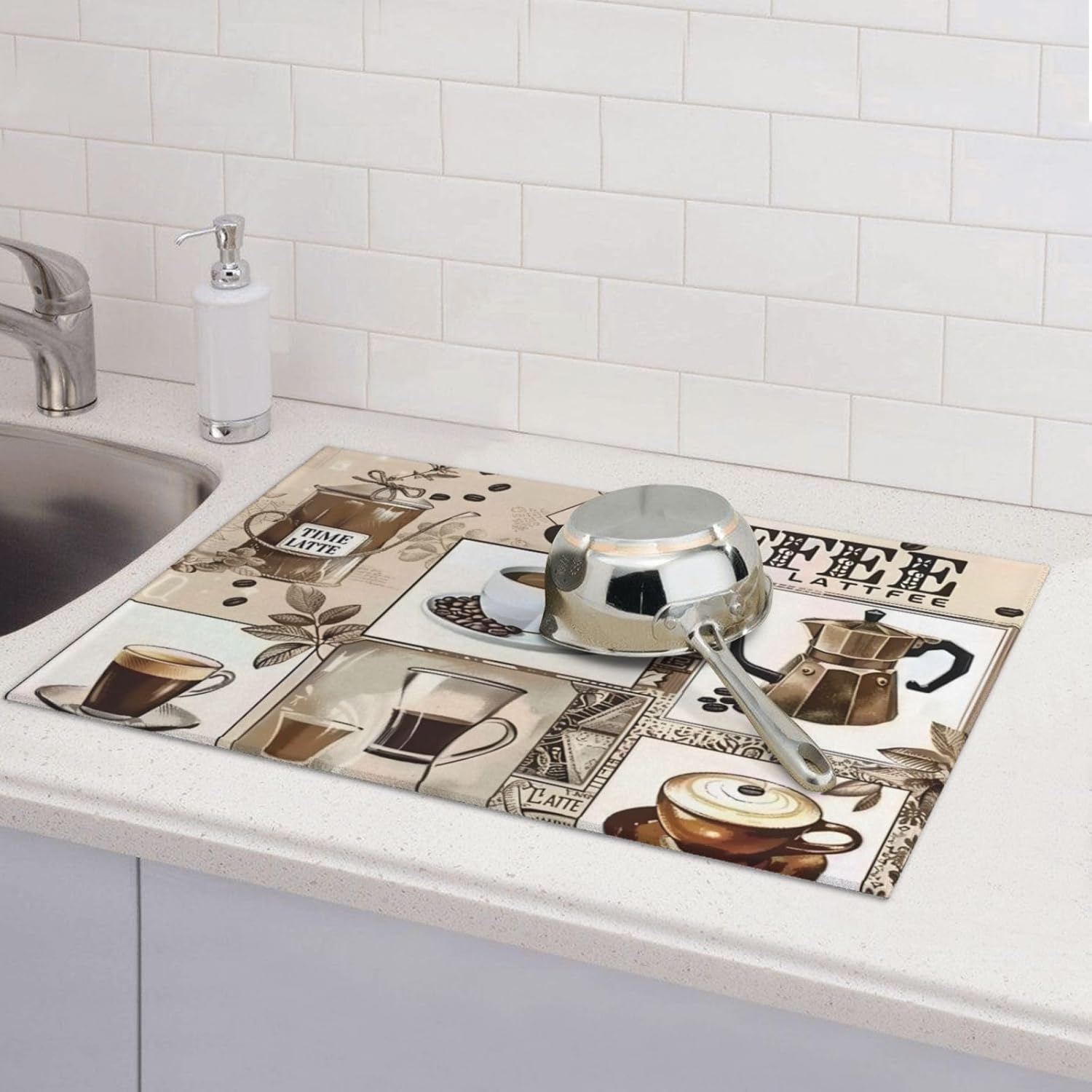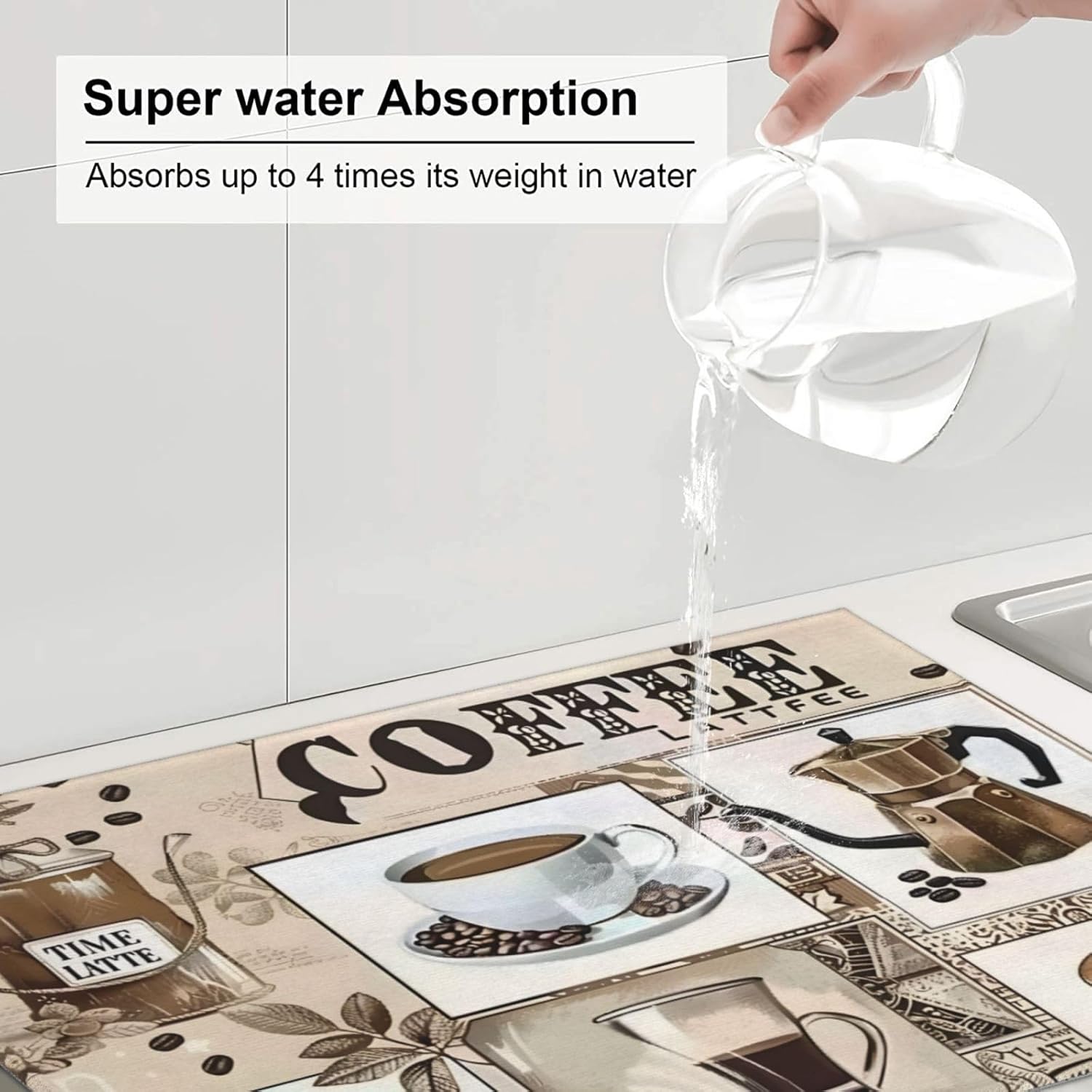 Coffee Dish Drying Mat, Highly Absorbent Microfiber Kitchen Counter Pad Reusable Washable, 18*24"