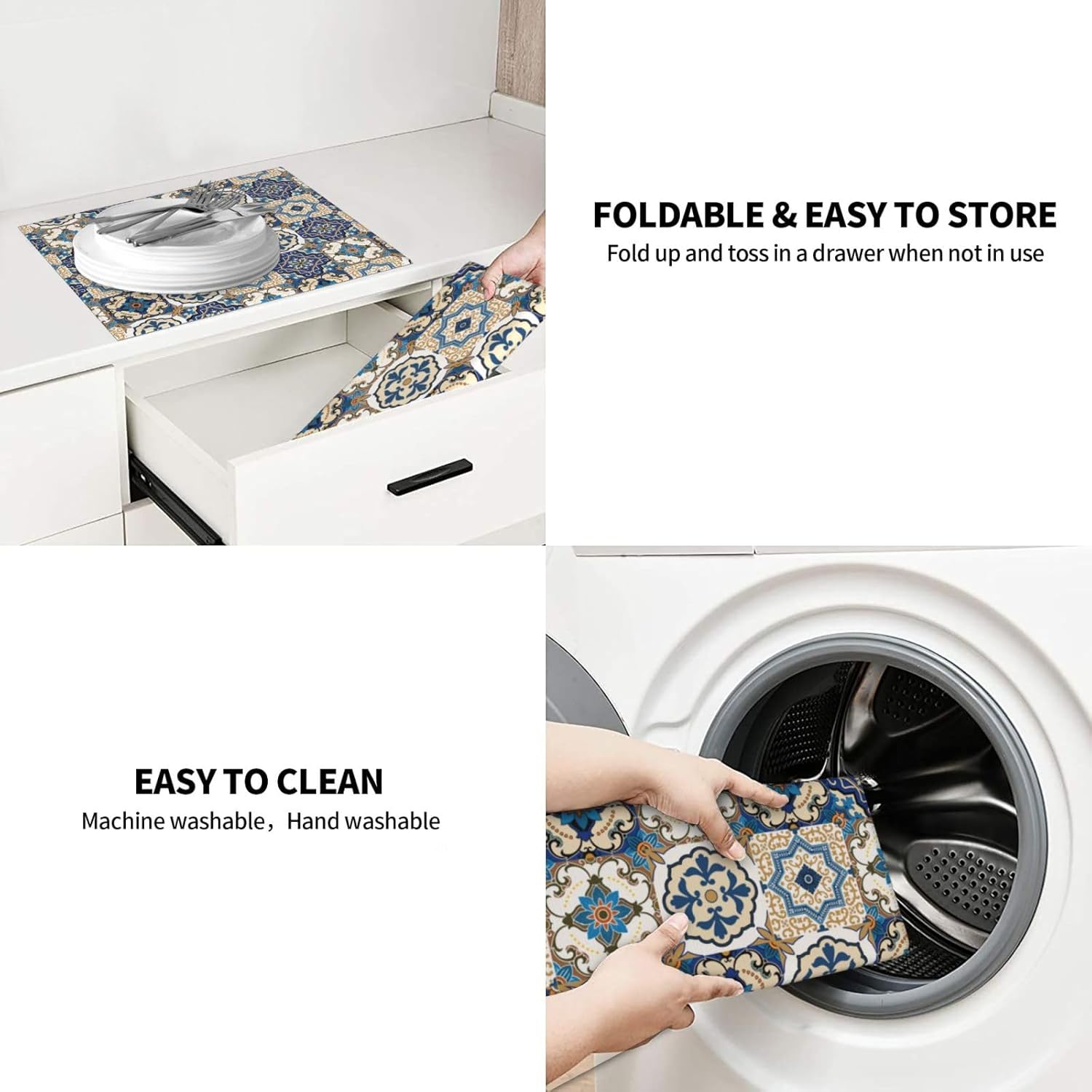 Colorful Moroccan Dish Drying Mat, Highly Absorbent Microfiber Kitchen Counter Pad Reusable Washable, 16*18"