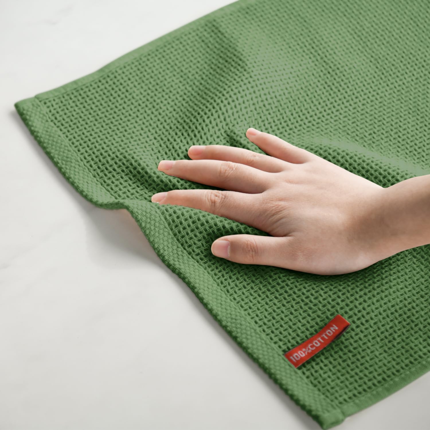 Artoid Mode 100% Cotton Olive Green Waffle Weave Kitchen Dish Cloths, 13x28 Inch Ultra Soft Absorbent Quick Drying Kitchen Dish Towels Set of 4