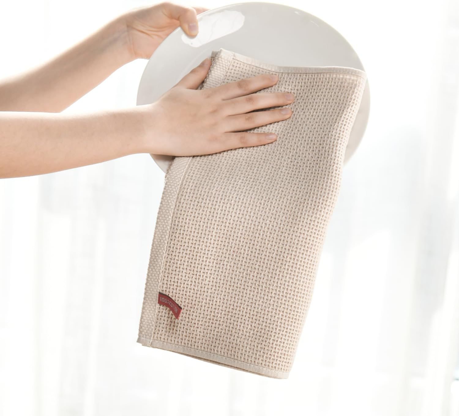 Artoid Mode 100% Cotton Beige Waffle Weave Kitchen Dish Cloths, 12x12 Inch Ultra Soft Absorbent Quick Drying Kitchen Dish Towels Set of 6