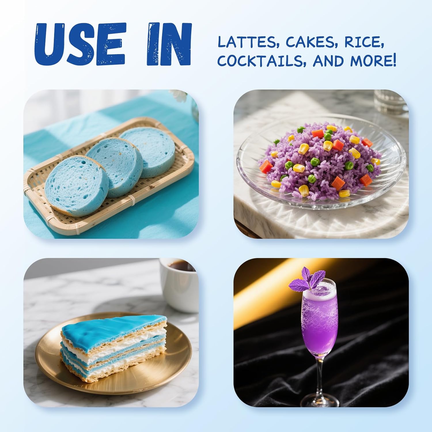 - Mesmerizing Blue Color: Add a splash of vibrant blue to your recipes. This powder creates a striking color that can change to purple or pink with a splash of lemon or lime, thanks to its natural pH-sensitive properties.