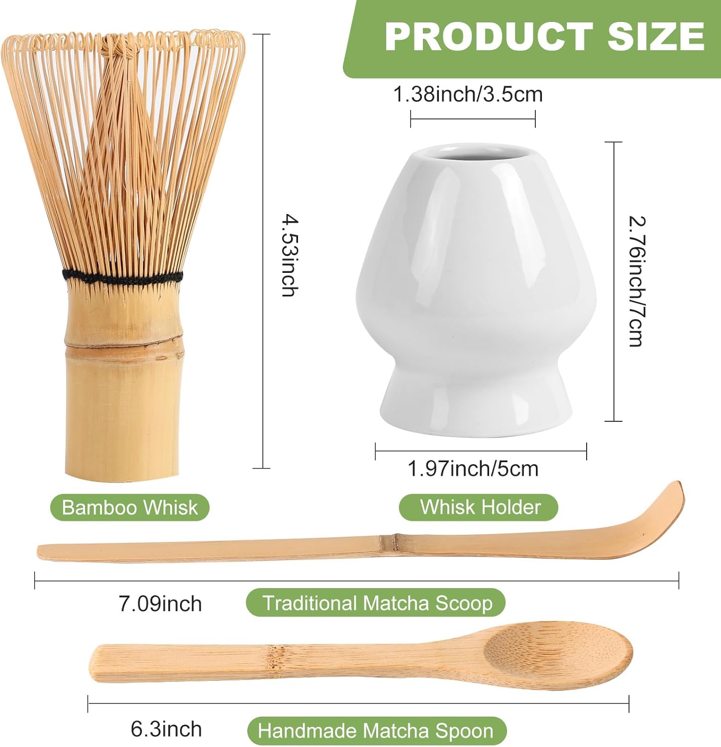 - [Japanese Matcha Whisk Set 4pcs]:This Matcha Set Contains A Handcrafted Bamboo Whisk(Chasen),Wooden Scoop,Matcha Spoon And Ceramic Whisk Holder, Making It An Ideal Matcha Starter Kit For Tea Lovers
