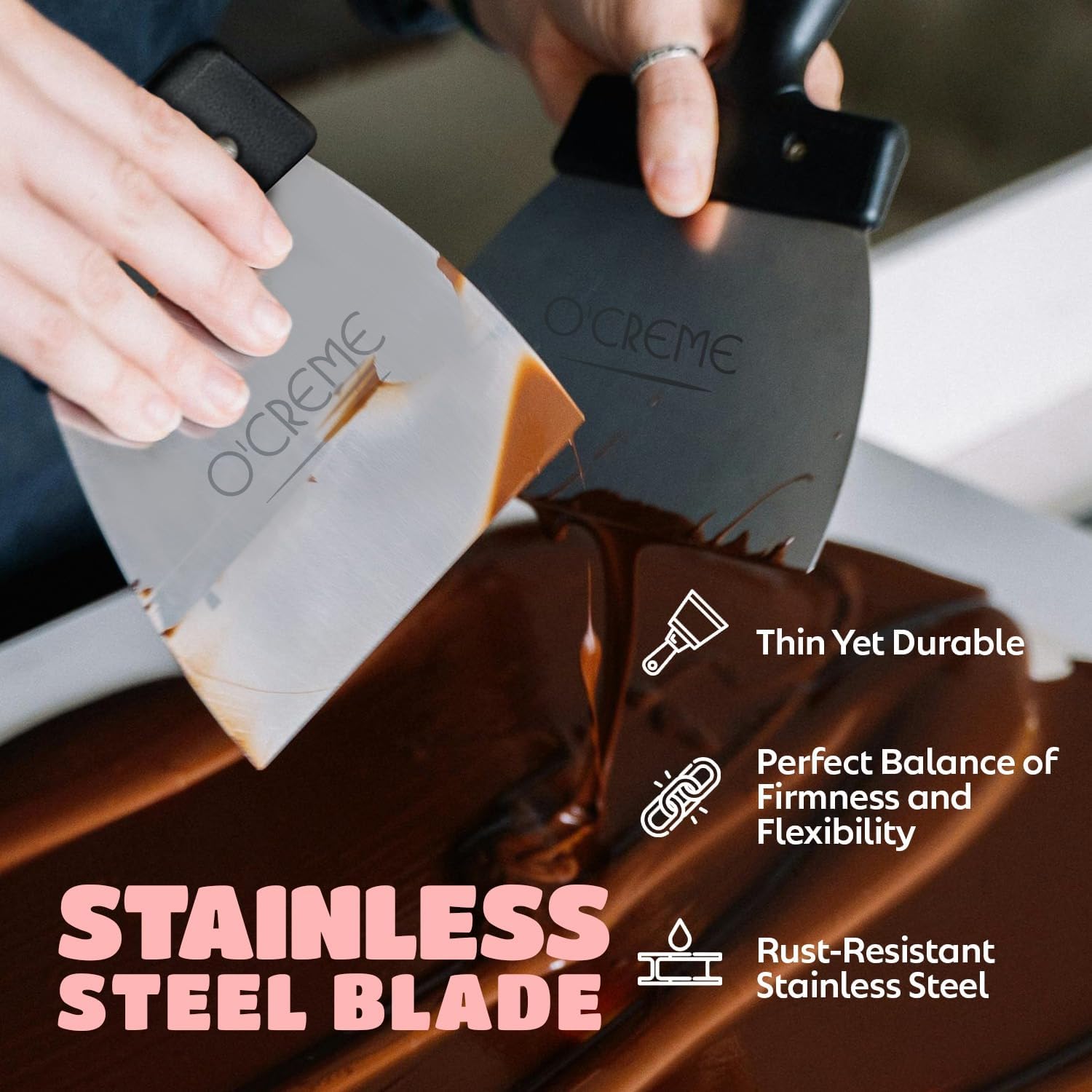 - Firm Yet Flexible Design – The blade is thin yet sturdy of this chocolate making tool, offering the right balance of firmness and flexibility to create smooth, even surfaces on chocolate, cakes, and dough.