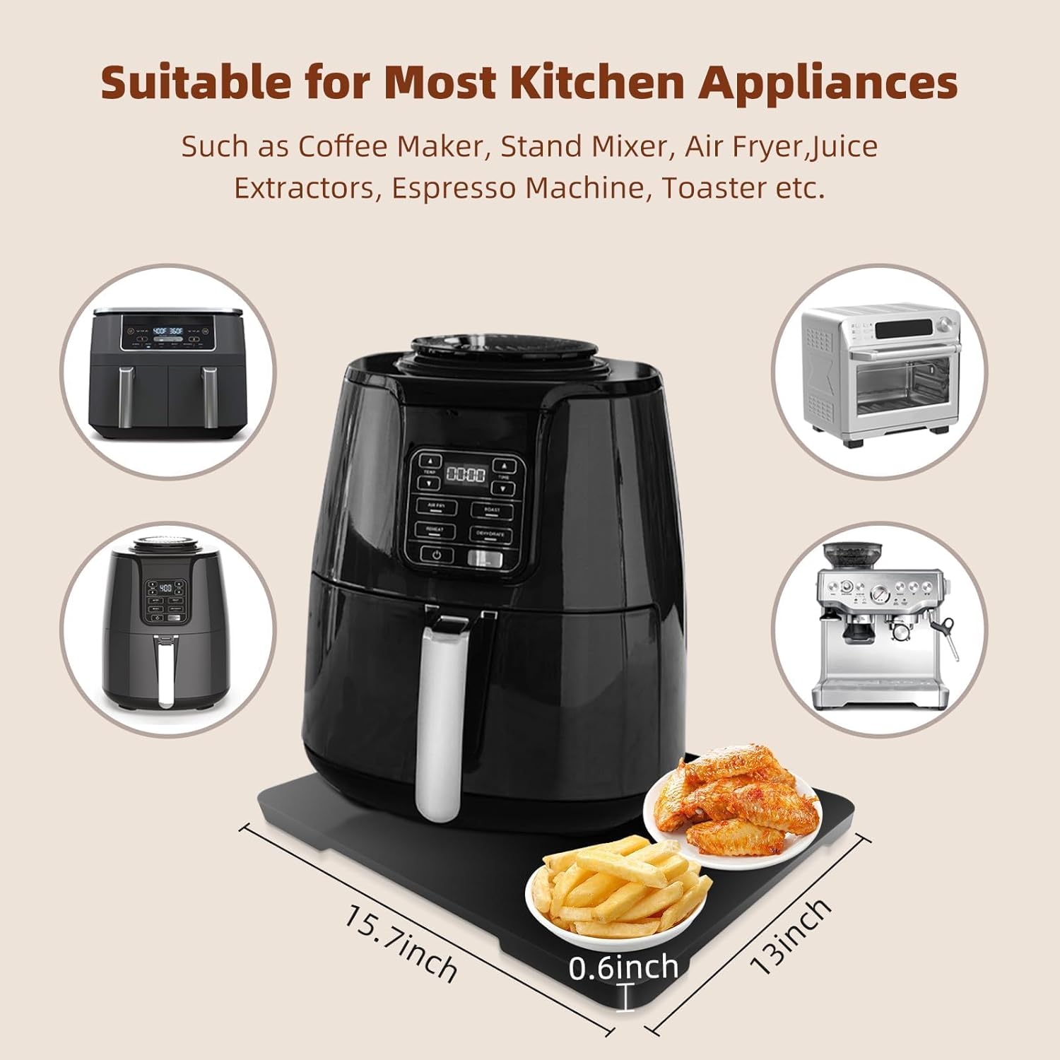 - SIZE OPTIONS: 【12.8"×15.8"】coffee maker slider tray for counter best for deeper depth double coffee makers or air fryers. Coffee maker trays for countertop suitable for Breville, Keurig K-Mini, Ninja,small coffee makers, espresso machines, air fryers, toasters and stand mixers.