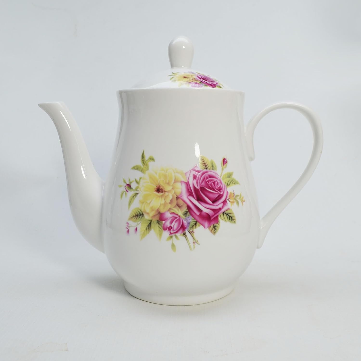 European Style Porcelain Teapot, Coffee Tea Water Pot Vintage Ceramic Kettle (50oz)