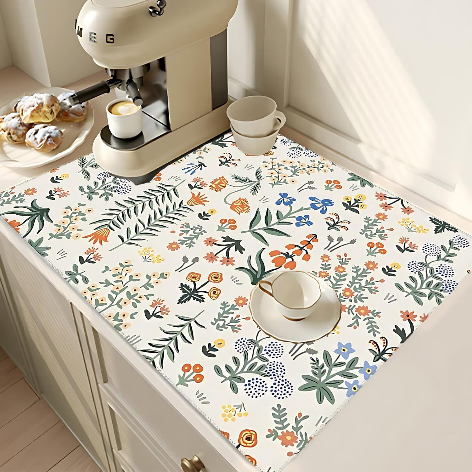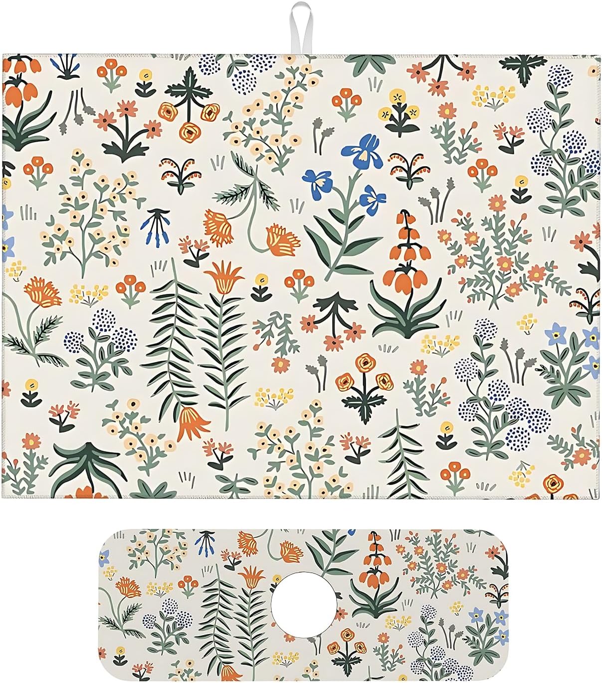 2Pcs Dish Drying Mats Faucet Mats Sets Large Size Coffee Mats Sink Faucet Mat Splash Guard for Kitchen Counter Bathroom Sink Coffee Bar Kitchen Decor (Wildflowers 2, 18"x24" 15" x 5.5"Set)