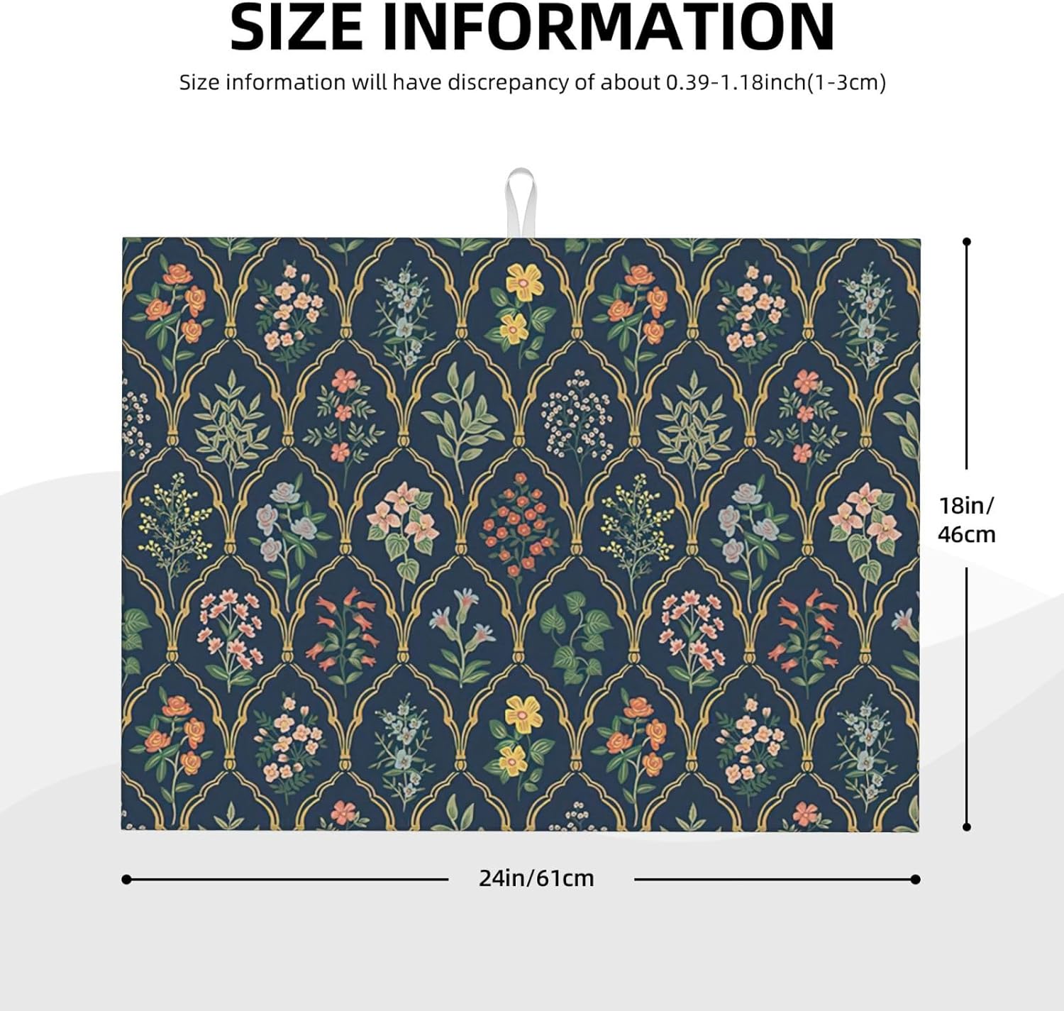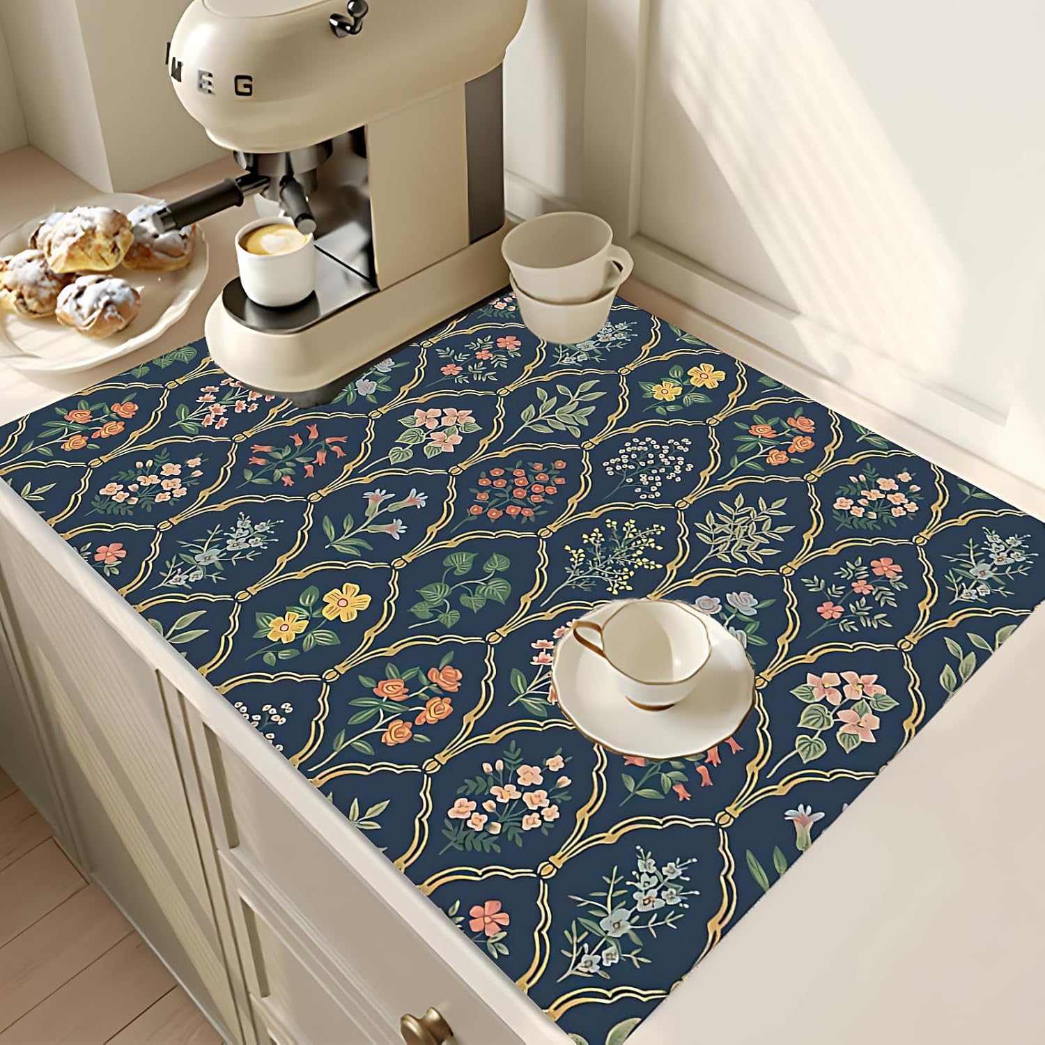 2Pcs Dish Drying Mats Faucet Mats Sets Large Size Coffee Mats Sink Faucet Mat Splash Guard for Kitchen Counter Bathroom Sink Coffee Bar Kitchen Decor (Vintage Flowers, 18"x24" 15" x 5.5"Set)