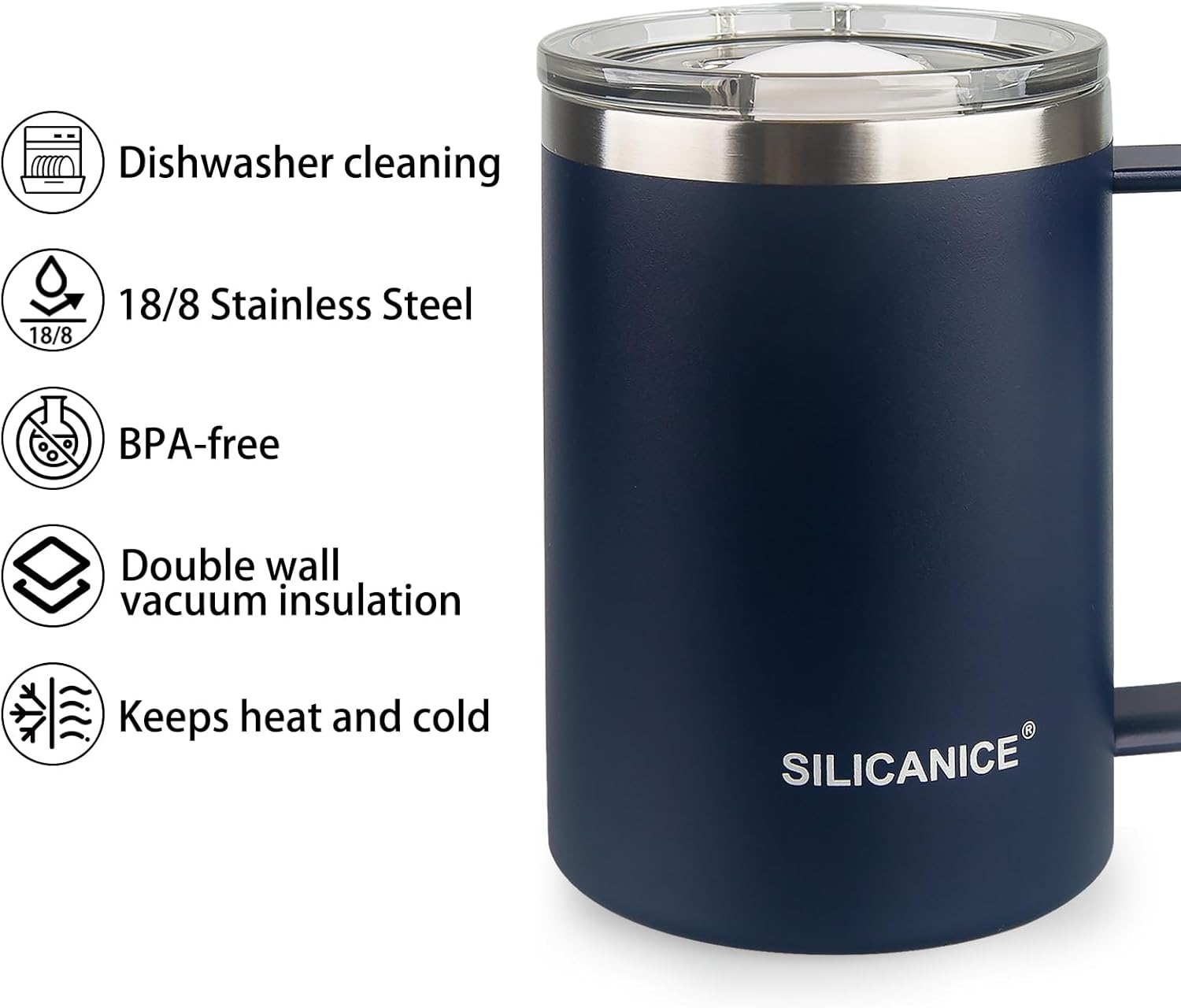 14 oz Stainless Steel Vacuum Insulated Tumbler with handle & MacSlider Lid, Dishwasher Safe & Spill Proof Coffee Cup, Travel Mug for Hot/Cold Drinks, Durable Design - Navy