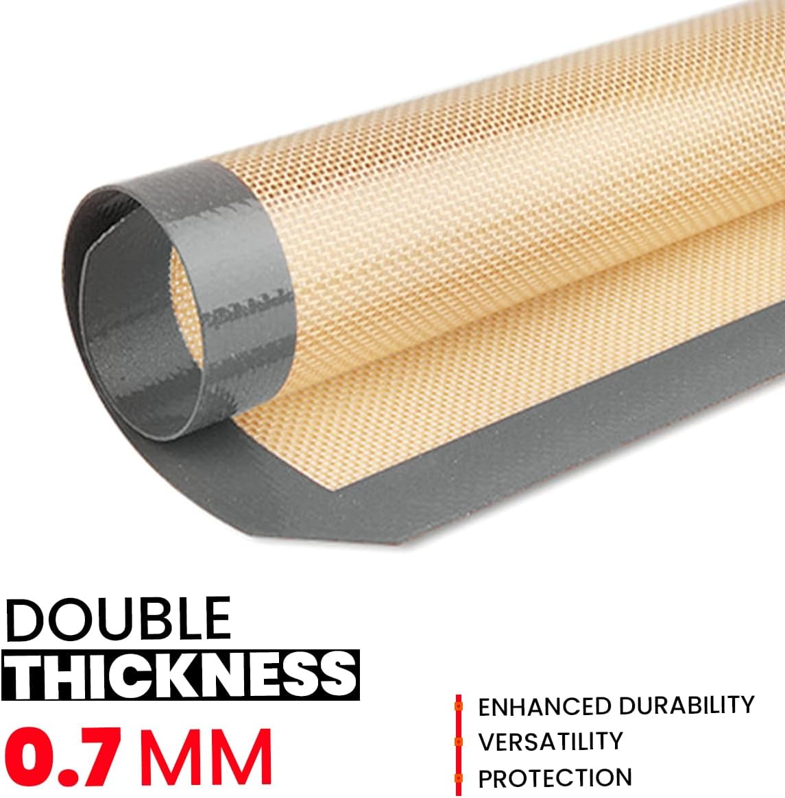 - MATERIALS: Baking mats silicone for baking sheets made from high-quality, flexible silicone and reinforced with a fiberglass core. Heat-resistant silicone oven mat will not warp or curl. Designed for everyday use, cookie mats for baking provide reliable outcomes whether you're preparing fragile pastries or crunchy pizzas.