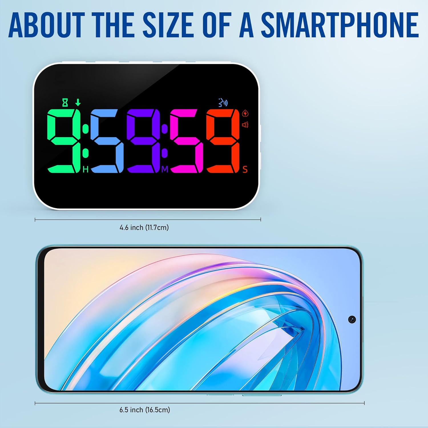 - Extra Large Display: This digital timer features a 5-inch extra large color-changing LED display. Even from across the room, you can easily read the time, reducing the possibility of reading difficulties or misreading. It is an ideal timer for kitchens, homes, gyms, classrooms, schools, and other occasions.