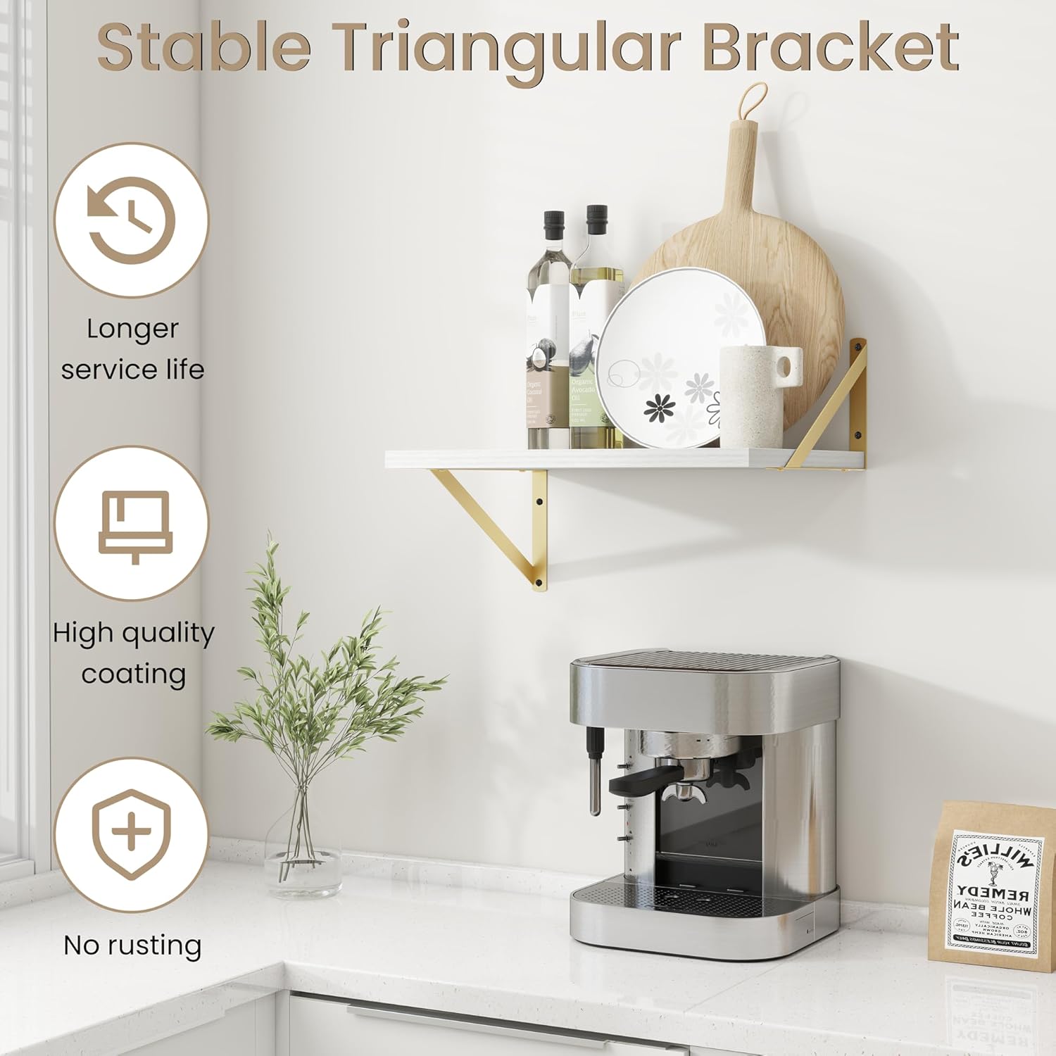 Dreamland Gold Floating Shelves for Wall, Gold Wall Shelf, Large Floating Shelf 12 * 16 inch Set of 2 for Bookshelf Living Room Bedroom Home Office Bathroom