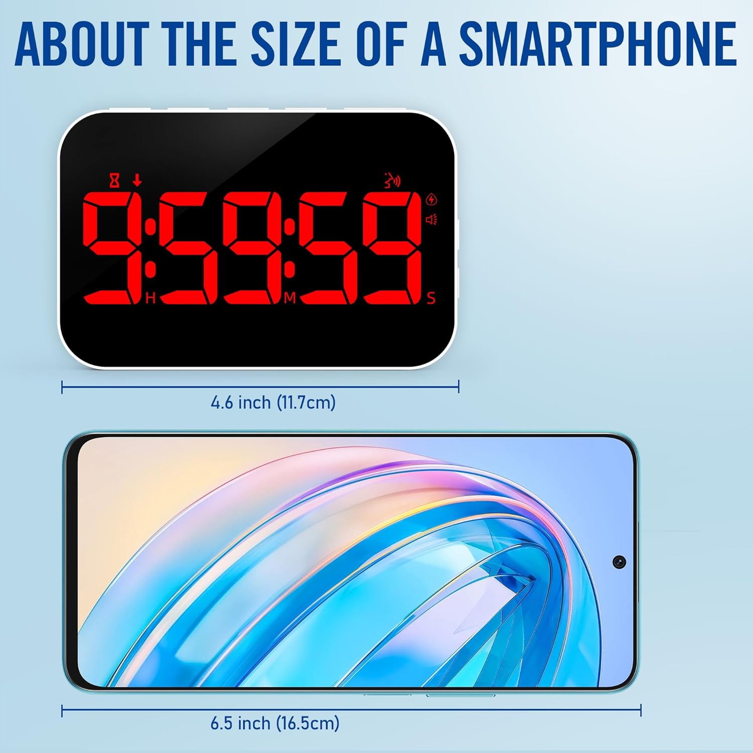 - Rechargeble Large LED Display Timer: No need for additional batteries, built-in battery supports Type C charging(Charging cable included in the package). 5" LED screen and red digital display can work for at least 5 hours in Hight Light Mode. When the battery is low, there is a low battery indicator in the upper left corner.