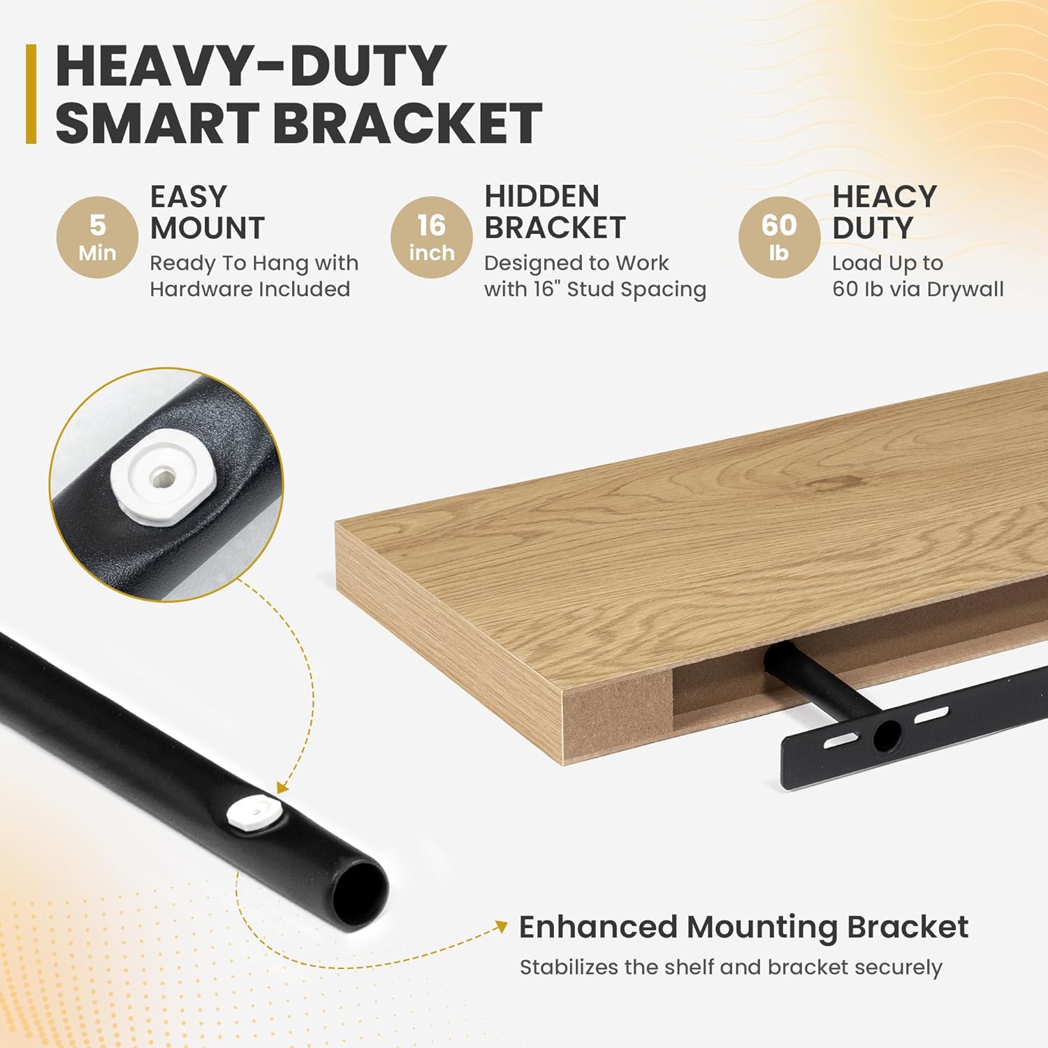 - [ROBUST & SECURE MOUNTING]: Equipped with a sturdy, hidden mounting bracket, these 36-inch floating shelves ensure solid support for your items. Designed for easy and secure installation, they come with all necessary hardware for a firm, wobble-free setup, allowing you to confidently display decor, photos, or functional items with style.