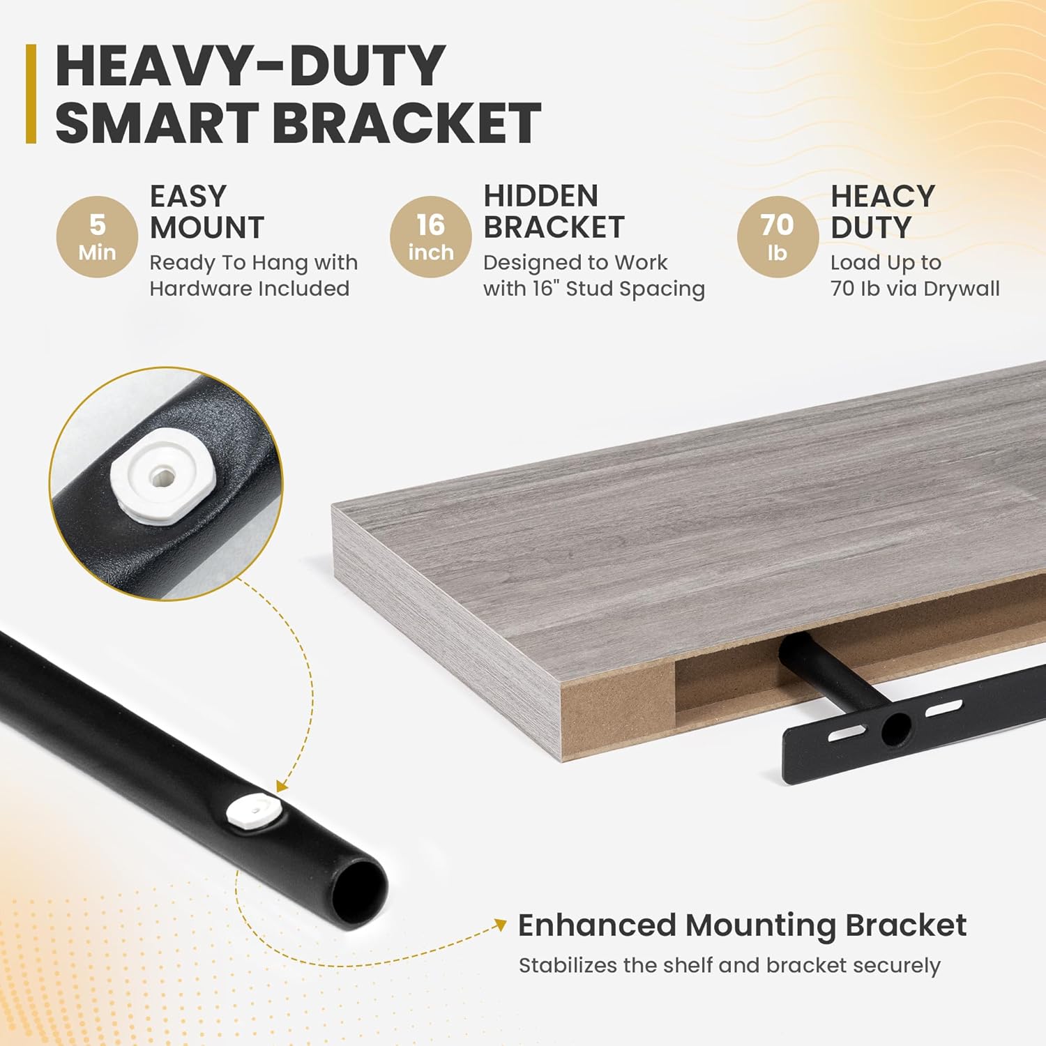 - [ROBUST & SECURE MOUNTING]: Equipped with a sturdy, hidden mounting bracket, these 40-inch floating shelves ensure solid support for your items. Designed for easy and secure installation, they come with all necessary hardware for a firm, wobble-free setup, allowing you to confidently display decor, photos, or functional items with style.