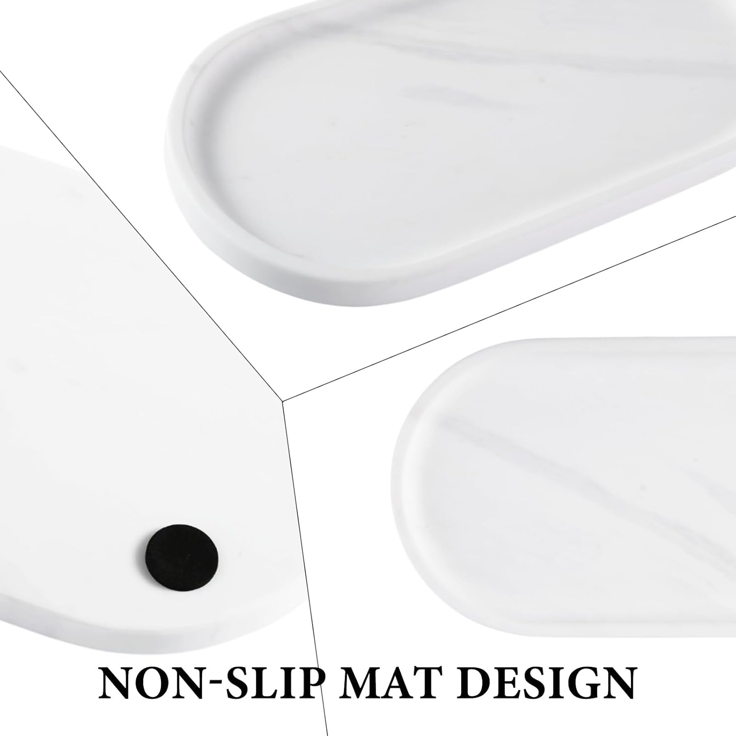 Koville 12"x6" Elegant White Marble Bathroom Tray, Natural Marble Vanity Trays for Home Decor, Stone Perfume Organizer Jewelry Dish for Dresser, Luxury Vanity Tray, Stone Storage Trays