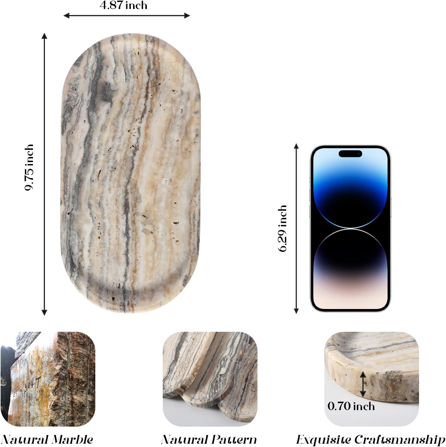 Koville 10"x5" Marble Vanity Tray for Bathroom Kitchen Countertop, Natural Marble Trays for Home Decor, Perfume Organizer Jewelry Dish, Stone Tray for Dresser, Decorative Candles Trays