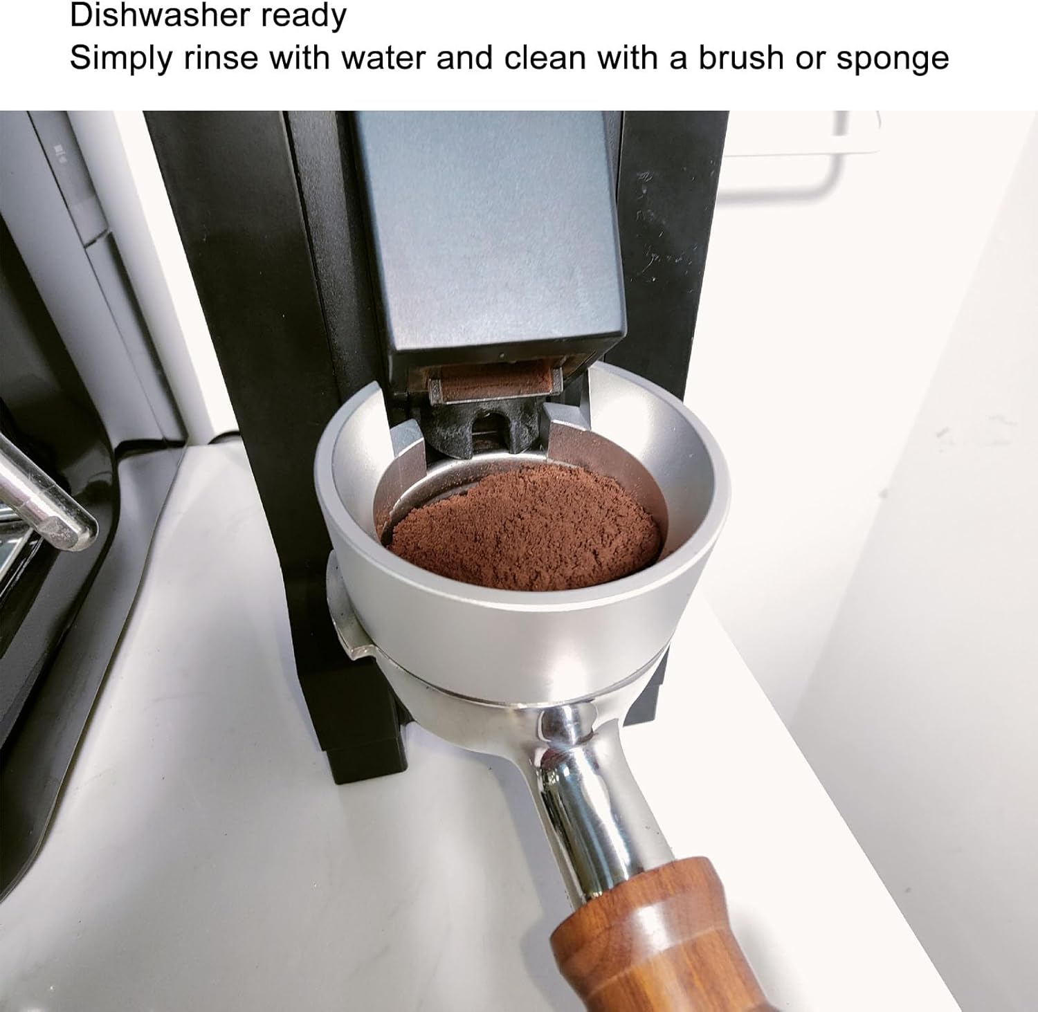 - [PREMIUM ALUMINUM CONSTRUCTION]: Crafted from rustproof aluminum, this dosing funnel ensures durability and safety. Made from food-grade materials for peace of mind in every brew.
