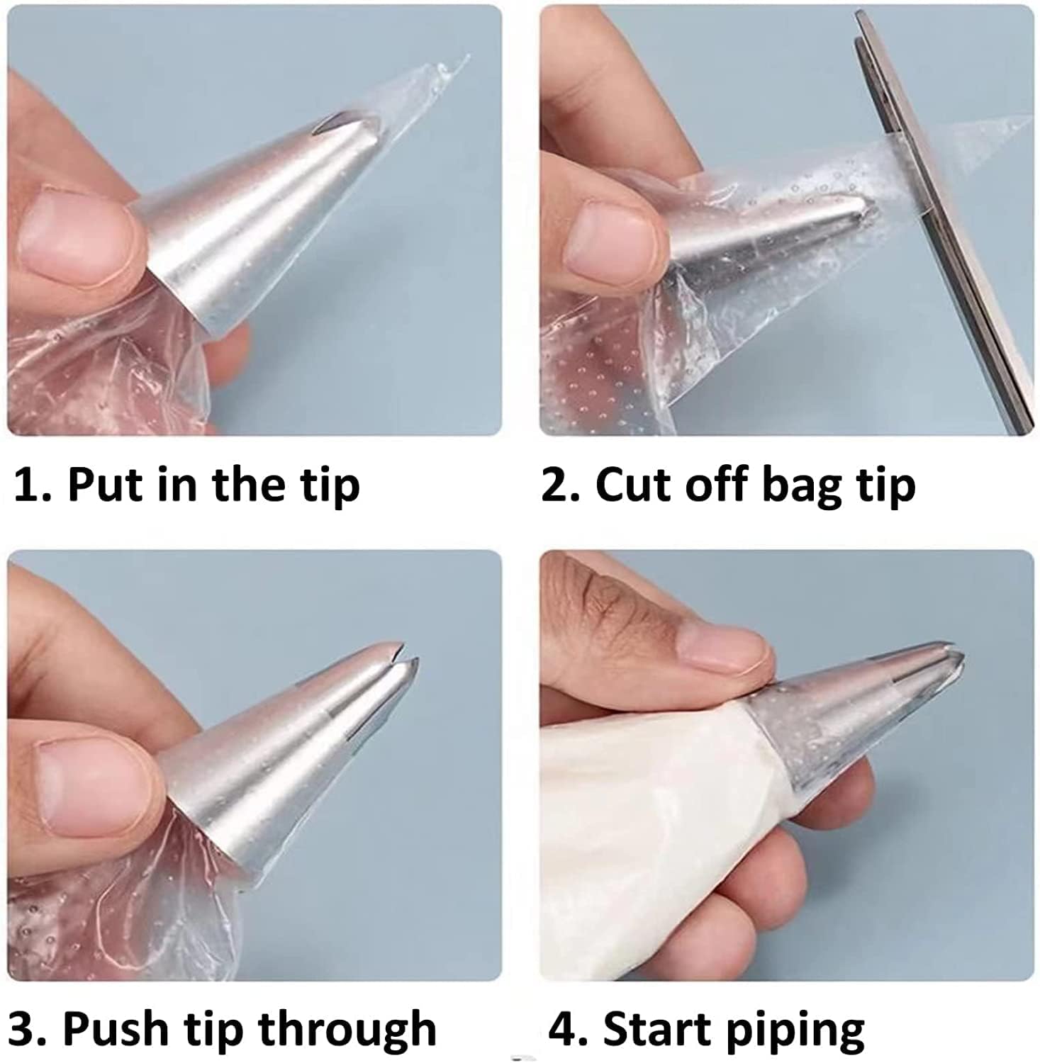 - 【Practical Design】: Wide opening makes bag simple to fill. Clear plastic makes it easy to anticipate refills. Thanks to the textured surface, these icing pipping bags have strong firm grip on the outside, easy to hold and get good continuous piping.