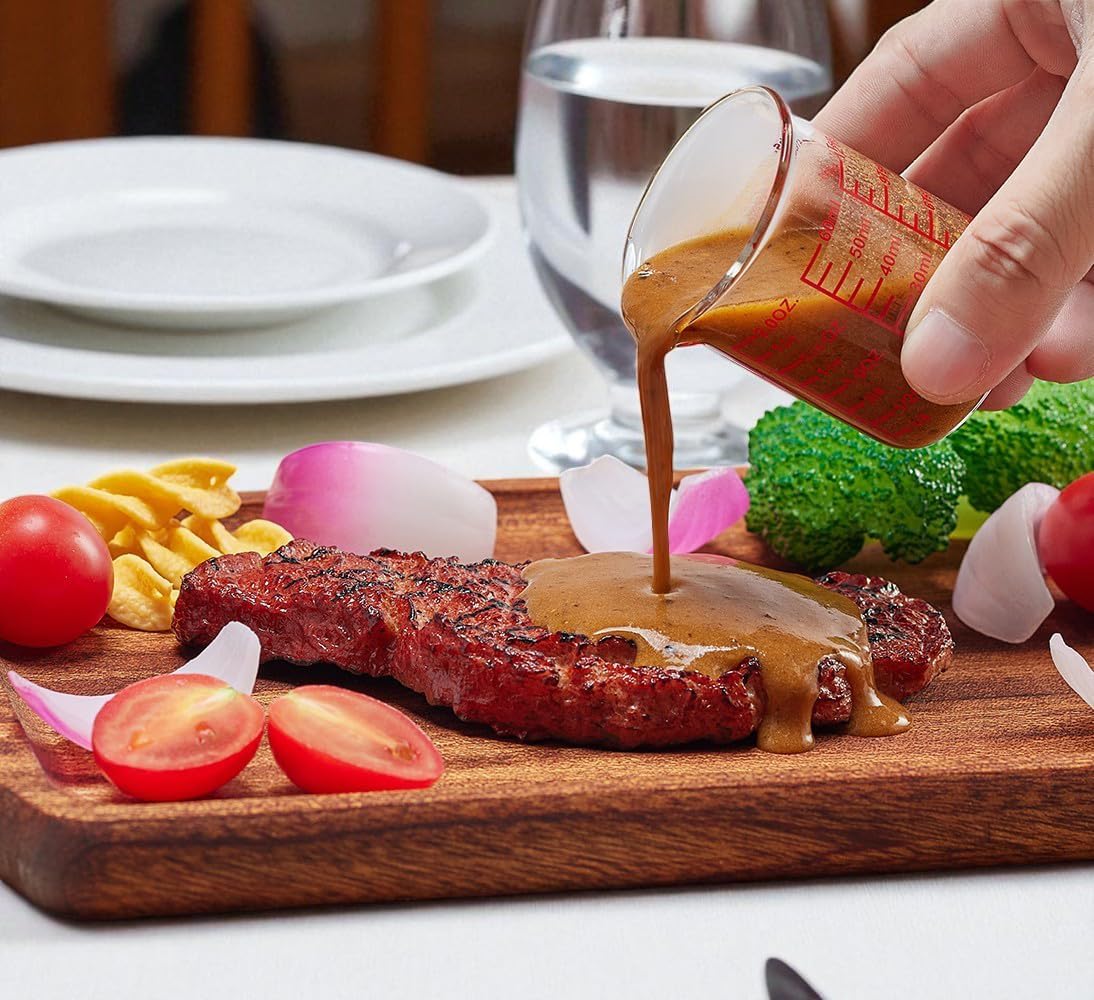High Borosilicate Glass Measuring Cup-V-Shaped Spout,Glass Measuring Beaker for Kitchen or Restaurant, Easy to Read, 60 ML (2 Oz)-Pack of 2