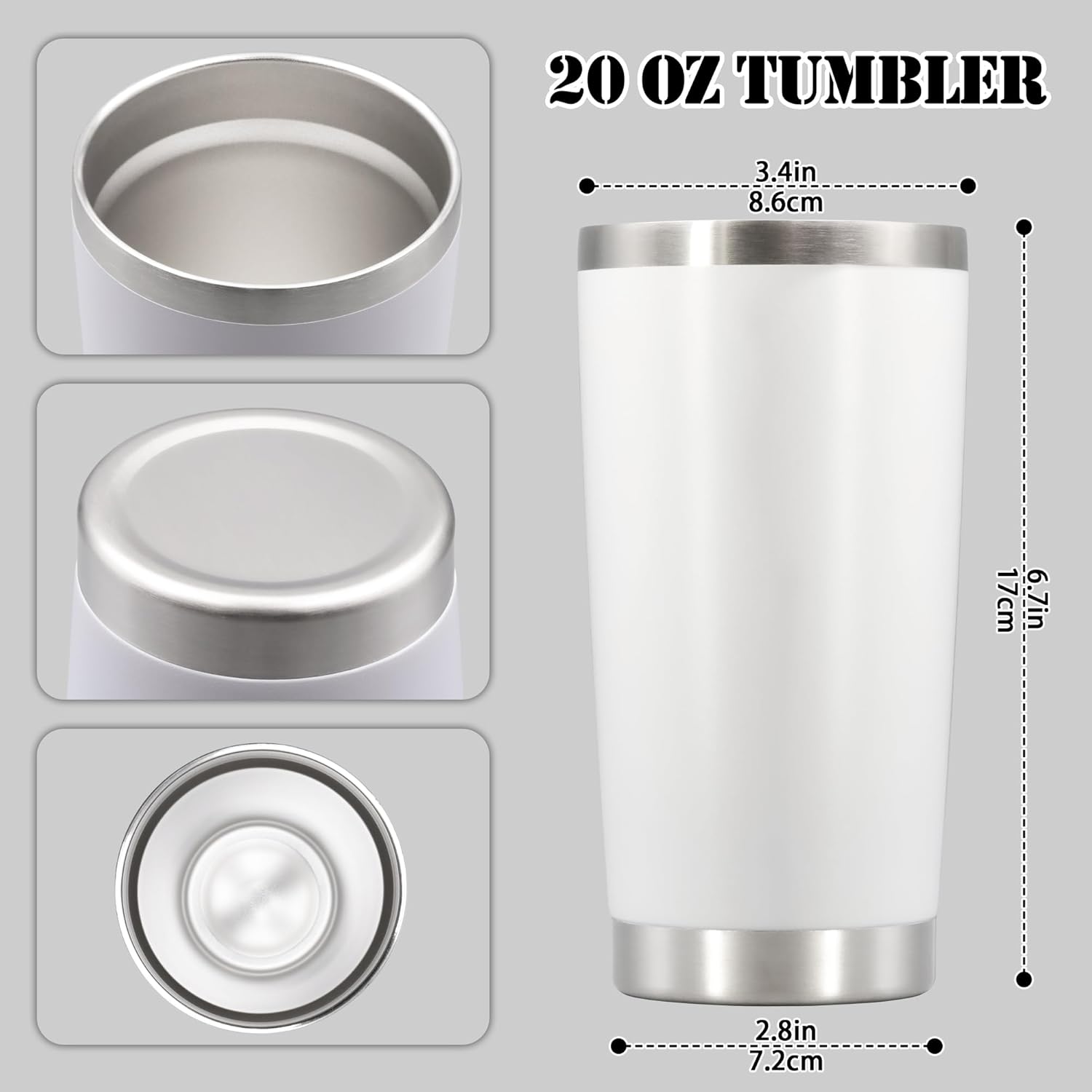 - SIZE & FITS CAR CUPHOLDER - The capacity of the tumbler is 20 oz and the smooth design of the tumbler body makes it suitable for most car cupholders. In addition, the tumbler can also be easily held