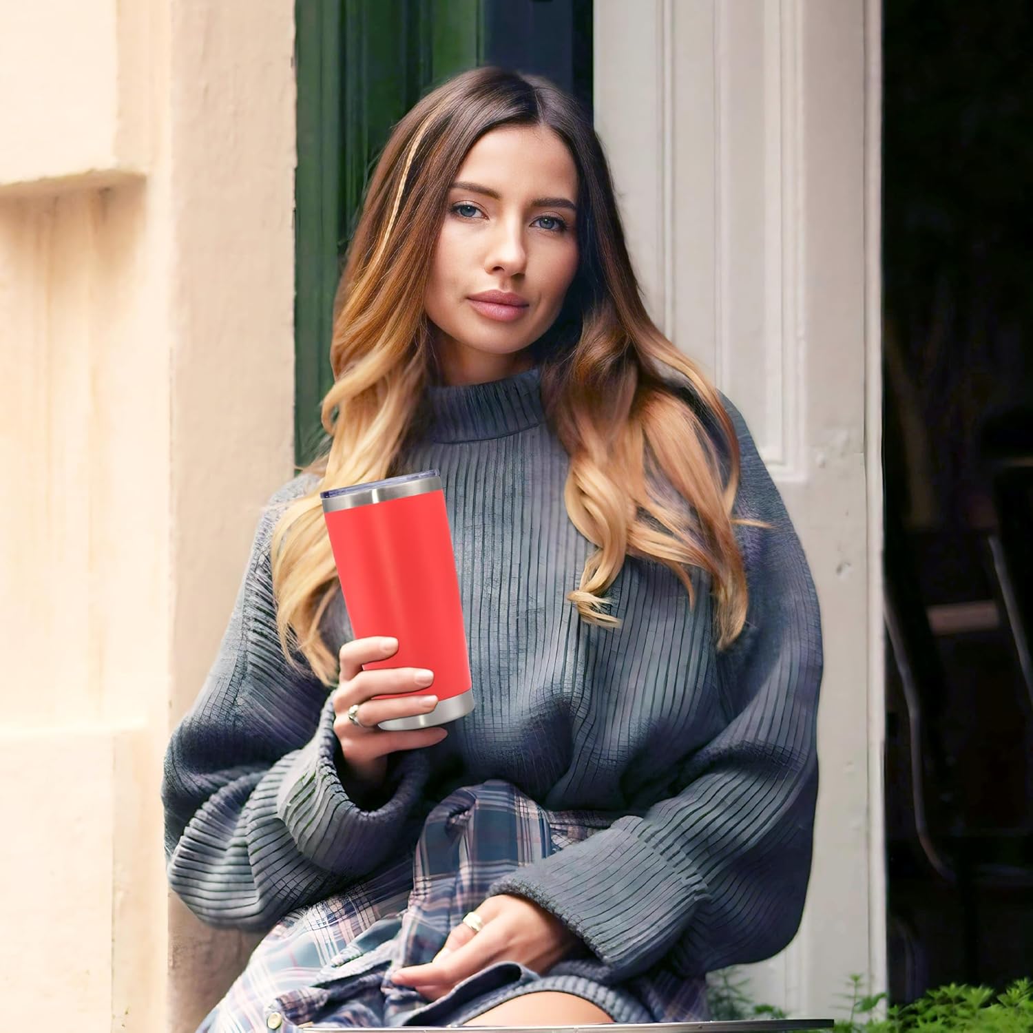 20 oz Tumbler with lid Double Wall Vacuum Insulated Tumblers Stainless Steel Coffee Mug Travel Coffee Tumbler Powder Coated Tumbler Cup Keep Hot&Cold - (Red 12 Pack)