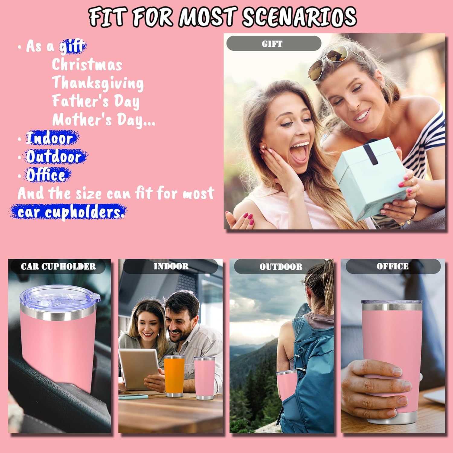 20 oz Tumbler with lid Double Wall Vacuum Insulated Tumblers Stainless Steel Coffee Mug Travel Coffee Tumbler Powder Coated Tumbler Cup Keep Hot&Cold - (Pink 6 Pack)