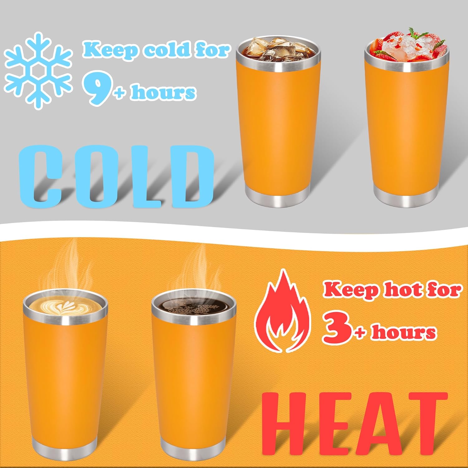 20 oz Tumbler with lid Double Wall Vacuum Insulated Tumblers Stainless Steel Coffee Mug Travel Coffee Tumbler Powder Coated Tumbler Cup Keep Hot&Cold - (Orange 6 Pack)