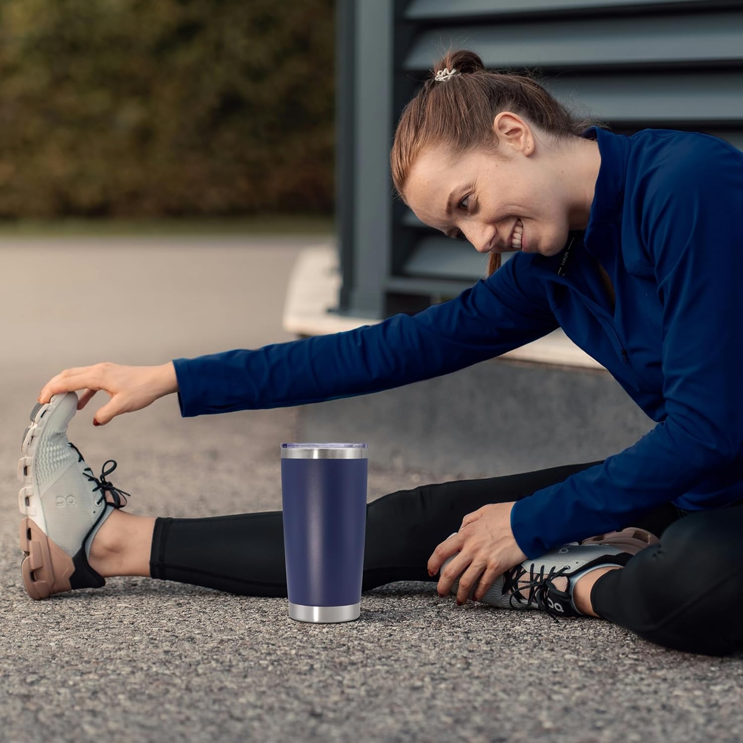 20 oz Tumbler with lid Double Wall Vacuum Insulated Tumblers Stainless Steel Coffee Mug Travel Coffee Tumbler Powder Coated Tumbler Cup Keep Hot&Cold - (Navy 6 Pack)