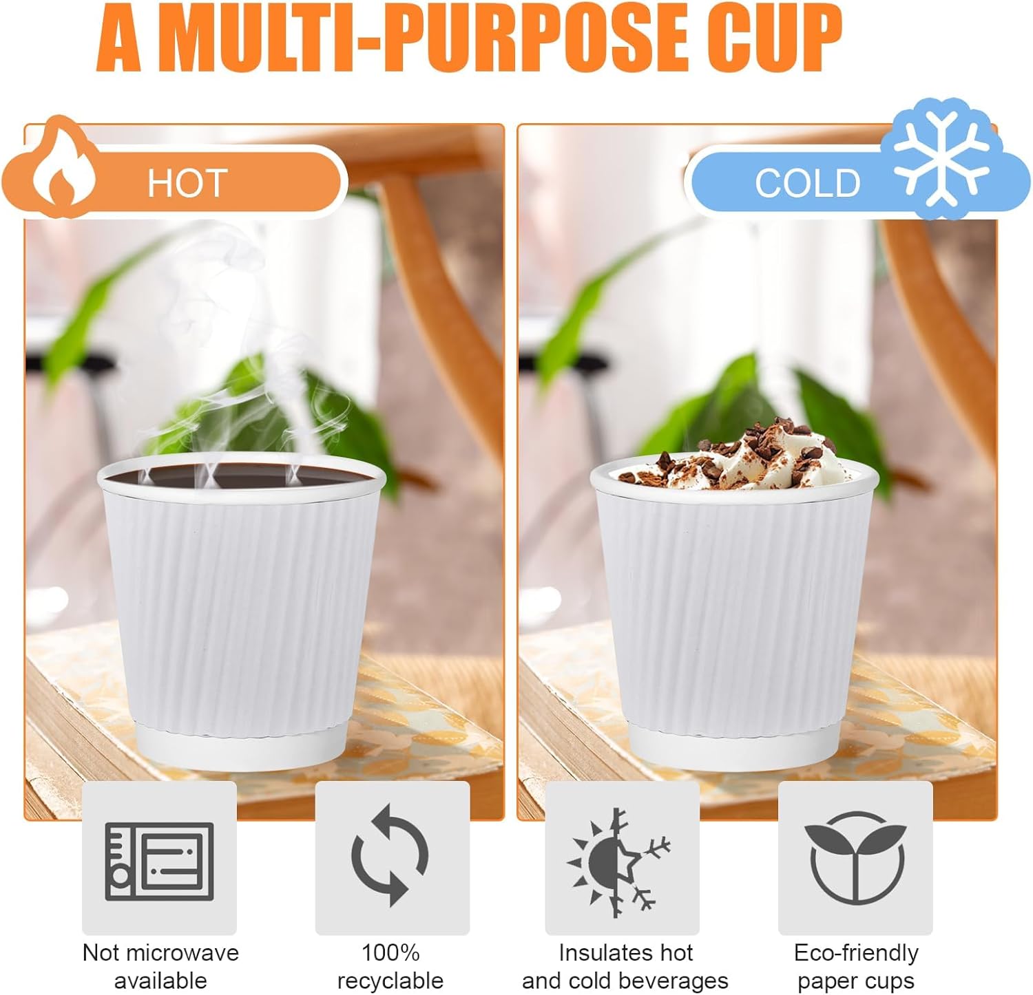 240Pack Paper Espresso Coffee Cups, 4 oz Disposable Coffee Cups,Corrugated Insulated Ripple Wall, Paper Ripple Cups for Coffee, Hot Chocolate and Hot Tea Drinks -White