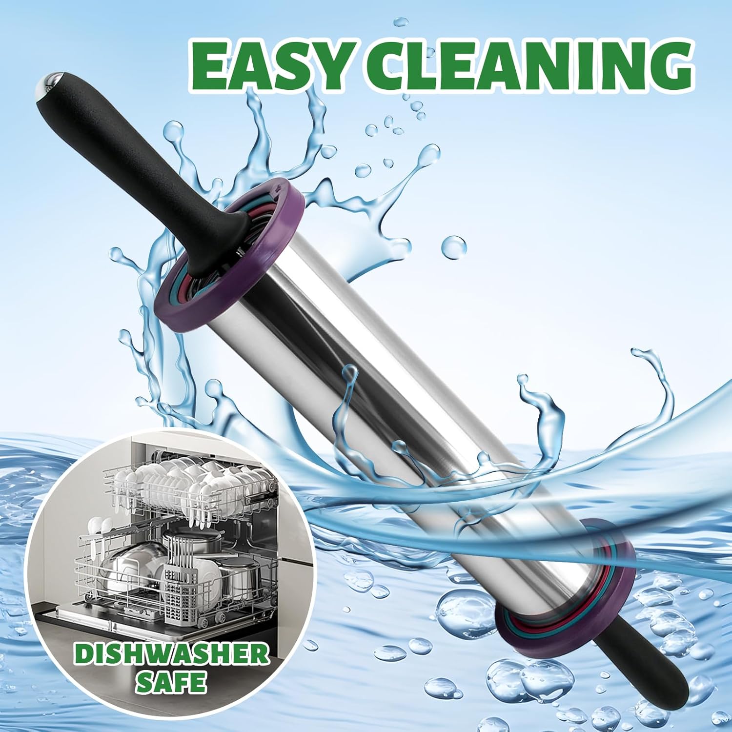 - High Quality: Rolling pin is made of 100 percent of food-grade 304 stainless steel. Elegant and stylish, high-grade satin brushed stainless steel finish for long life, very easy to clean. The stainless steel dough roller is so smooth to surprise you