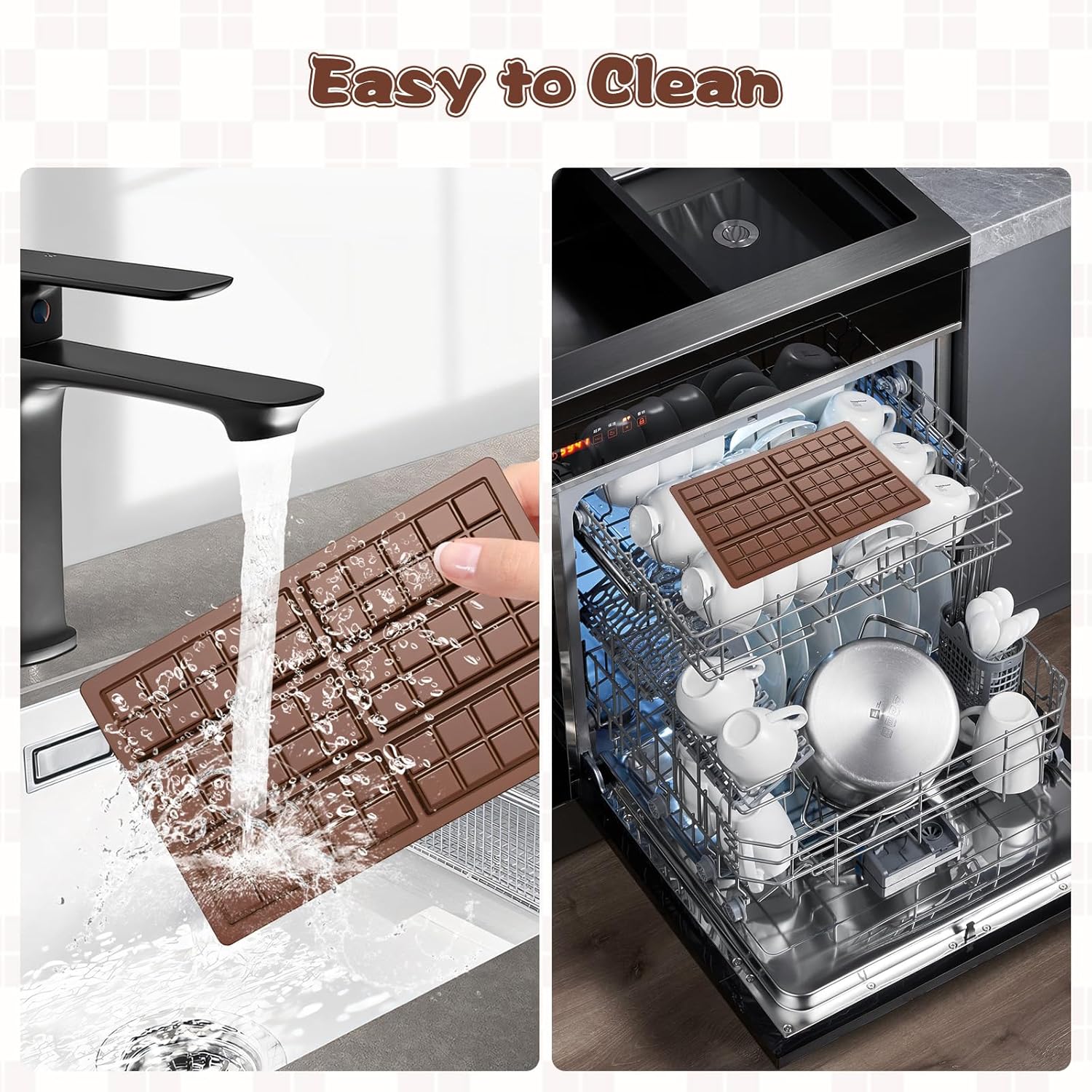 - EASY TO CLEAN AND USE: Cleaning our chocolate bar molds is simple, they can be washed by hand with soap and water or directly into the dishwasher for a quick and easy clean. Save time and energy while enjoying your chocolate creations.