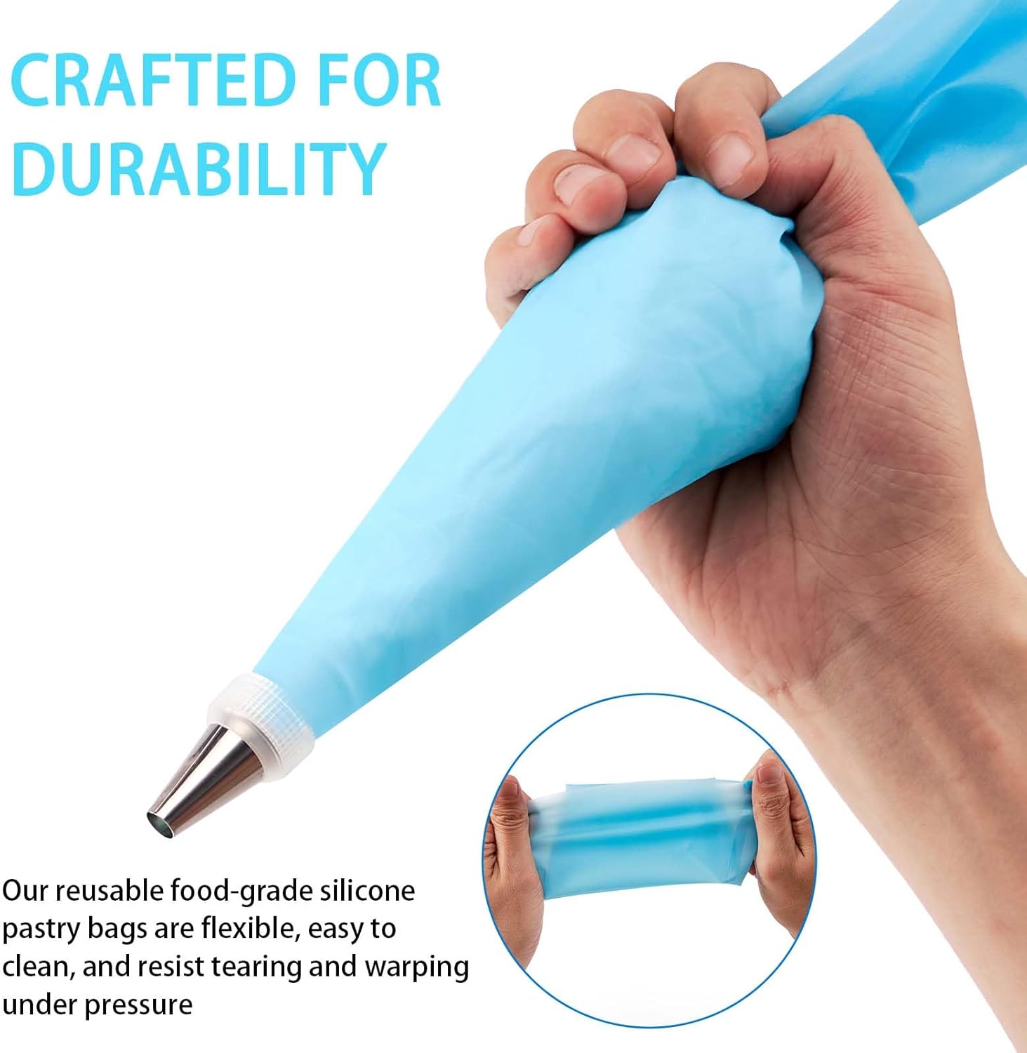 - 🎂【PREMIUM QUALITY MATERIALS】: Made from high-grade stainless steel, the tips are corrosion-resistant, non-stick, and completely safe for long-term use. The reusable icing pastry bags are crafted from high-quality TPU, offering excellent anti-slip properties, flexibility, and durability
