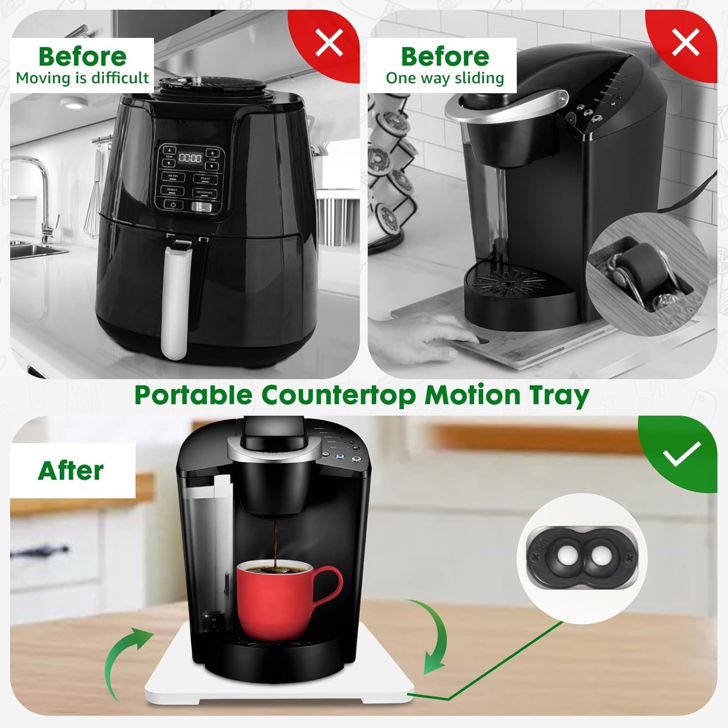 - 【360° Countertop Mobility】The appliance slider is equipped with 360° rollers for all-around mobility, making it easy to move various kitchen appliances.